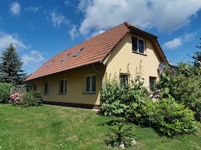 Das Wahrzeichen der Region ist selbstverständlich die Seebrücke von Heringsdorf. Sie ziert die zwölf Kilometer lange Promenade und ist das längste, nationale Bauwerk dieser Art. Wenn Sie dort entlang flanieren, blicken Sie auf die drei Juwele der Insel: Die Kaiserbäder Ahlbeck, Bansin und Heringsdorf. Die schmucke Bäderarchitektur, die Sie an vielen Teilen der mecklenburg-vorpommersche Ostseeküste von hier bis Blowatz finden, lädt zu einem kleinen Bummel ein. Ein sehenswertes Beispiel dafür ist die Villa Achterkerke. Das blau-weiße Gebäude wurde 1845 erbaut und strahlt einen ganz speziellen, nostalgischen Charme aus. Unweit davon liegt die rotleuchtende "Kirche im Walde", die als Besonderheit einen Davidstern in ihrer Uhr aufweist. Von Ihrem Ferienhaus Usedom ist der nächste Sandstrand selten weit entfernt, ob Koserow, Heringsdorf oder Zinnowitz. Über 40 Kilometer zählen die Badebuchten insgesamt. Außerdem verzaubern zwölf Naturschutzgebiete mit herrlichen Landschaften und einer üppigen Flora und Fauna. Ein wahres Kleinod ist der romantische Mümmelkensee. Rundherum führen Wanderwege durch die Moore und Sümpfe und überall erblüht die Gelbe Teichrose, die Mummel, die dem See ihren Namen gab.