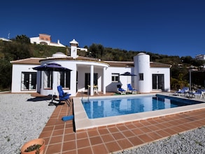 Der sonnenverwöhnte Ferienort Arenas liegt etwa 40 km von der Provinzhauptstadt entfernt, unweit von Velez Málaga im Zentrum des Landkreises Axarquia. Arenas liegt 400 m über dem Meeresspiegel, die Durchschnittstemperatur beträgt etwa 17,5 °C. Die unverwechselbaren Landschaftsformationen von Arenas und seiner Umgebung werden von den Felsmassiven der Sierra de Almijara, sowie der Sierra de Tejada, geformt. Abgesehen von diesen Erhebungen besteht die Landschaft um das Ferienhaus Arenas aus einer Abfolge von sanften Bergrücken an der Costa del Sol, auf denen Weinreben, Olivenhaine und Mandelbäume das Landschaftsbild bestimmen.
