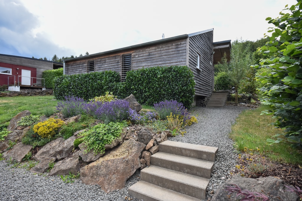 Das Haus spricht besonders Menschen an, die viel draußen sein wollen, mit dem Rad fahren und/oder wandern, aber trotzdem eine stilsichere, designorientierte Übernachtungsmöglichkeit suchen. Das Design von Ferienhaus zeigt eine Reduktion auf das Wesentliche. Die Farbauswahl spiegelt sich in angenehmen Basalt- und Erdtönen. Übernachten und wohnen Sie in einem futuristisch anmutenden Haus mit Dusche/WC, vollausgestatteter Küche, Wohnzimmer, gemütlichem Holzofen, großer Terrasse und super gemütlichem Doppelbett. Das Magma eignet sich für zwei Personen. Hier erlauben wir nach Rücksprache auch das Mitbringen von Haustieren. Es sind ausreichend frische Bade-, Hand-, und Küchentücher vorhanden. Bettwäsche müssen Sie nicht mitbringen, denn wir beziehen die Betten für Sie.