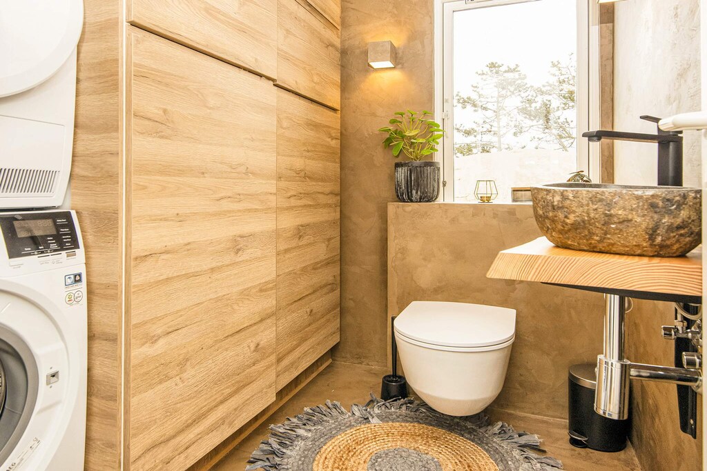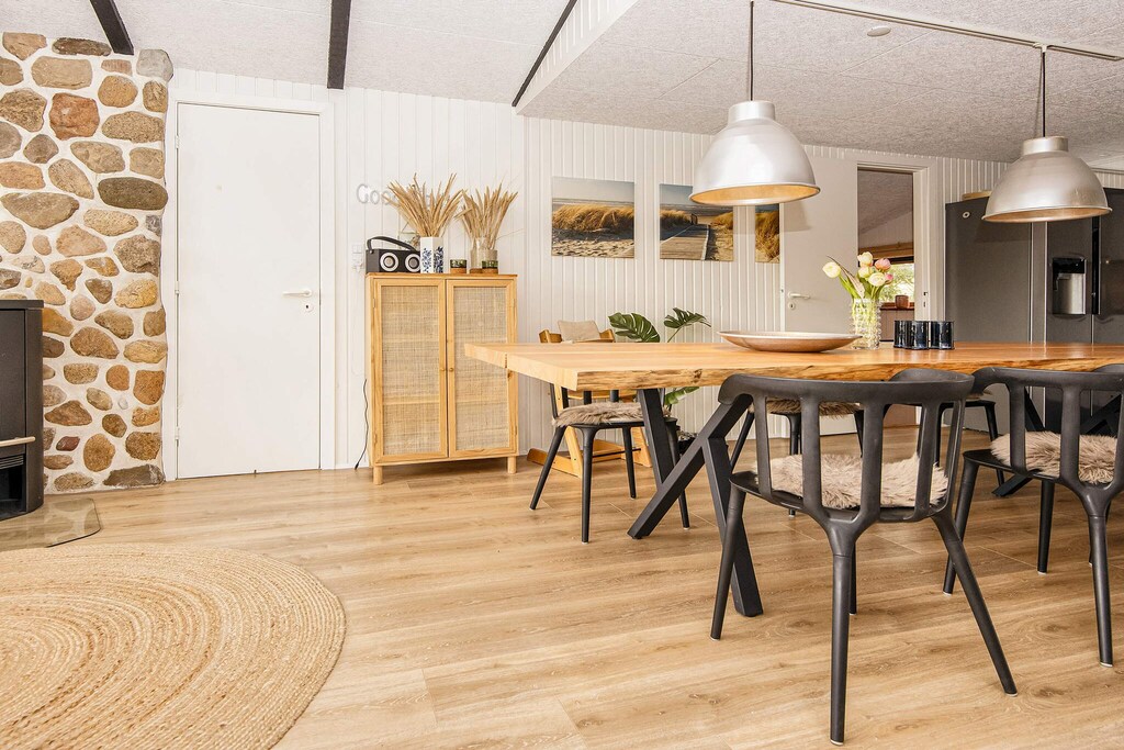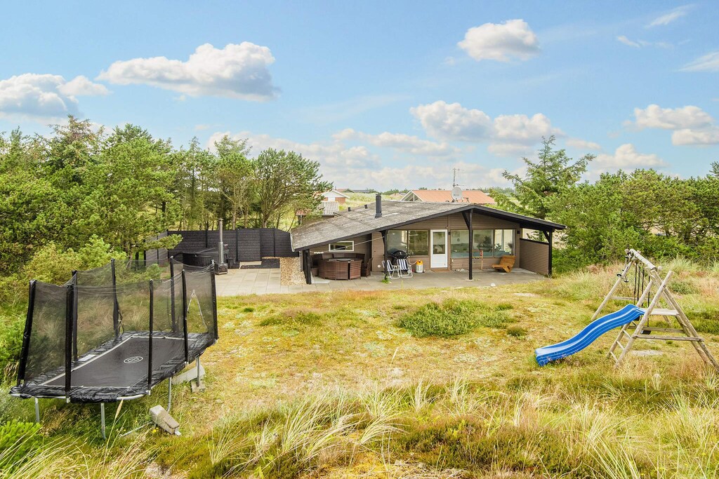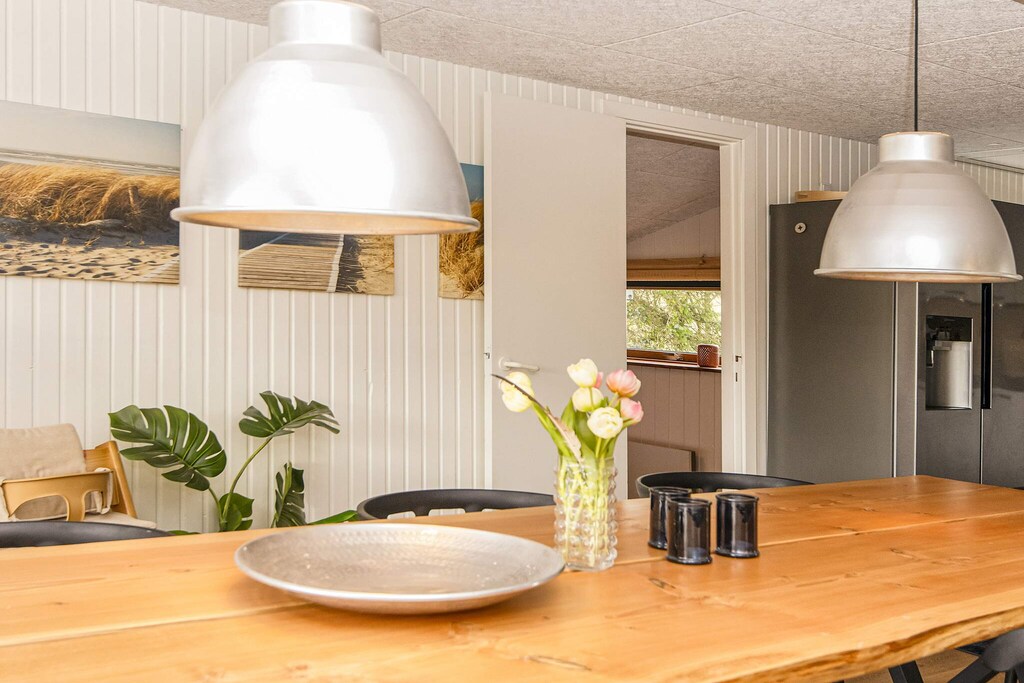 Mitten in der Dünenlandschaft und nur etwa 600 m von der Nordseeküste bei Bjerregård entfernt erwartet Sie dieses Ferienhaus mit Tischkicker und Heimtrainer sowie kostenfreies WLAN für den Freizeitspaß. Im Haus gibt es auch einen offenen, gut ausgestatteten Küchen-Wohnbereich für das Familienleben, inklusive Essescke, Holzofen und einiger deutscher Sender zur Auswahl im TV. Zwei Treppenstufen unterhalb des Wohnbereichs findet man zwei Schlafzimmer, beide mit je einem Doppelbett ausgestattet. Zudem gibt es noch zwei weitere Schlafzimmer im Haus, beide mit je einem Etagenbett für zwei Personen eingerichtet. Der sogenannte Aktivitätsraum des Hauses ist durch eine Glastür und ein Fenster vom Wohnzimmebereich abgetrennt. Es gibt auch ein Gäste-WC und ein Badezimmer mit Dusche und angenehmer Fußbodenheizung. Zur technischen Ausstattung gehören praktische Helfer wie z.B. Geschirrspüler, Waschmaschine und Wäschetrockner. In der kühleren Jahreszeit können Sie es sich abends vor dem Holzofen gemütlich machen und hinausschauen in die reizvolle Dünenlandschaft ringsum. Keine Vermietun an Jugendgruppen erwünscht!Kurz vor Ihrem Ankunftsdatum kann eine rückzahlbare Kaution erhoben werden. Die Kaution stellt sicher, dass Ihr Aufenthalt reibungslos verläuft, und deckt eventuelle Zusatzleistungen oder Verbrauchskosten ab.Diese Kaution deckt den Verbrauch von Nebenkosten während Ihres Aufenthalts sowie zusätzliche in Anspruch genommene Leistungen ab.Der endgültige Betrag wird anhand der tatsächlichen Zählerstände und Nutzung zusätzlicher Services angepasst. Ein etwaiger Restbetrag wird Ihnen innerhalb von 21 Tagen nach dem Check-out zurückerstattet.Die Kaution dient lediglich als Vorauszahlung für Leistungen, die Sie ohnehin bezahlen würden, und ermöglicht einen reibungslosen Ablauf Ihres Aufenthalts und Check-outs.