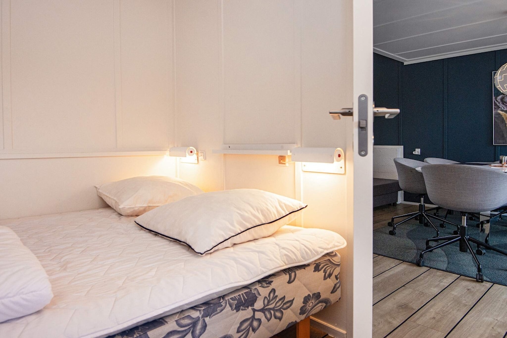 Modernes Stadthaus im charmanten Øer Maritime Holiday Village mit zwei einladenden Terrassen und einem Balkon – alle mit malerischem Blick auf die Kanäle des Feriendorfs. Dank ihrer unterschiedlichen Ausrichtung können Sie den ganzen Tag über die Sonne genießen. Das Haus erstreckt sich über mehrere Ebenen und verfügt über eine stilvolle und moderne Innenausstattung mit Liebe zum Detail, die eine helle und einladende Atmosphäre schafft. Das Haus verfügt über zwei geräumige Schlafzimmer und einen Dachboden und ist somit ideal für Familien oder kleine Gruppen. Das Herzstück des Hauses ist der offene Küchen-, Ess- und Wohnbereich, der auf Komfort und Geselligkeit ausgelegt ist. Beide Terrassen, die sich auf gegenüberliegenden Seiten des Hauses befinden, sind nahtlos mit dem Wohnbereich verbunden und dienen als natürliche Erweiterung des Innenraums – perfekt für Mahlzeiten im Freien, zum Entspannen oder einfach zum Relaxen. Das Haus liegt nur 700 Meter von einigen der besten Sandstrände von Ebeltoft entfernt. In der Umgebung gibt es auch ein saisonales Restaurant und einen kleinen Lebensmittelladen, ideal, um frische Frühstücksbrötchen zu kaufen. Wenn Sie mit einer größeren Gruppe reisen, kann das Haus problemlos mit dem nahe gelegenen DanCenter-Haus Nr. 52706 kombiniert werden. Bitte beachten Sie: Das Haus wird nicht an Jugendgruppen vermietet.Kurz vor Ihrem Ankunftsdatum kann eine rückzahlbare Kaution erhoben werden. Die Kaution stellt sicher, dass Ihr Aufenthalt reibungslos verläuft, und deckt eventuelle Zusatzleistungen oder Verbrauchskosten ab.Diese Kaution deckt den Verbrauch von Nebenkosten während Ihres Aufenthalts sowie zusätzliche in Anspruch genommene Leistungen ab.Der endgültige Betrag wird anhand der tatsächlichen Zählerstände und Nutzung zusätzlicher Services angepasst. Ein etwaiger Restbetrag wird Ihnen innerhalb von 21 Tagen nach dem Check-out zurückerstattet.Die Kaution dient lediglich als Vorauszahlung für Leistungen, die Sie ohnehin bezahlen würden, und ermöglicht einen reibungslosen Ablauf Ihres Aufenthalts und Check-outs.
