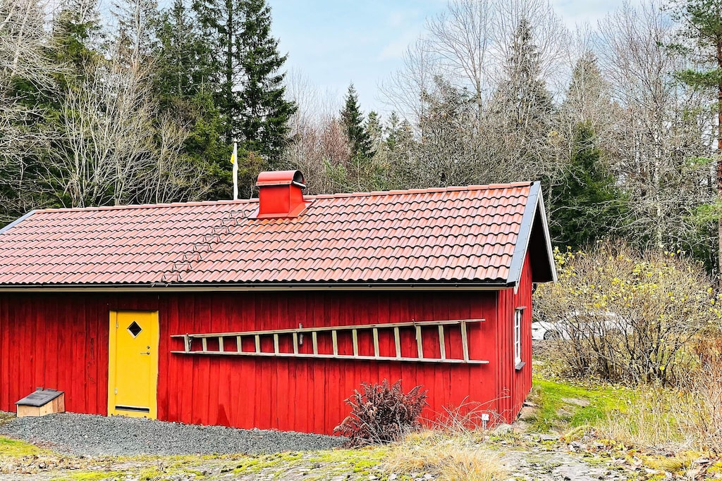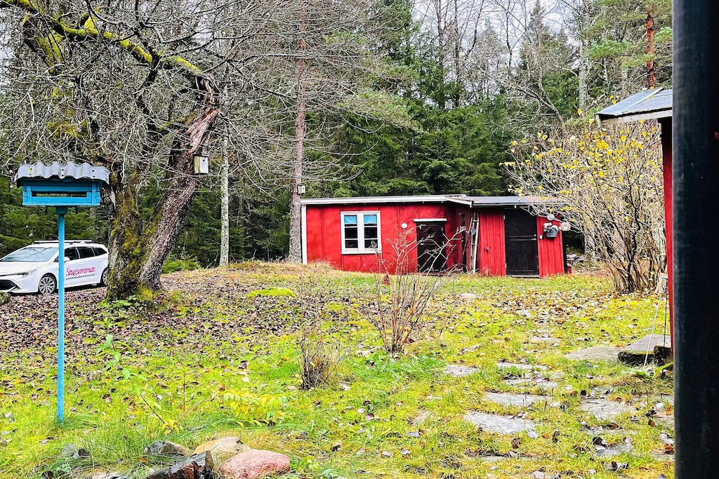 Willkommen in diesem typisch roten Häuschen auf dem Lande! Hinter dem Haus hört man einen Wasserfall, der im Takt des Windes rauscht und der Wald liegt gleich nebenan. Das Haus ist einfach, aber charmant und lädt Sie zur Erholung inmitten der schwedischen Natur ein. Eine kleine Straße führt bergab direkt zum Haus, wo Sie direkt daneben parken können. Das rot-weiße Ferienhäuschen hat eine ältere, massive Holztür in Blau. Davor gibt es Sitzgelegenheiten unter dem Baum und ein leicht hügeliges Grundstück, ideal zum Spielen und Faulenzen. Den Eingang findet man an der Rückseite des Hauses. Er führt direkt in den Küchenbereich. Die Küche ist im Landhausstil eingerichtet und die Küchenzeile stammt von IKEA. In der Küche gibt es einen Kühlschrank mit Gefrierfach, einen Holzherd, einen Minibackofen mit zwei Kochplatten und einen kleinen Tisch mit Sitzgelegenheiten für 2 Personen. Es gibt kein heißes Wasser im Wasserhahn, sondern dieses muss im großen Gefäß auf dem Holzofen oder auf dem Kochfeld erhitzt werden. Auf der linken Seite befindet sich das Schlafzimmer, das im Sommer 2022 renoviert wurde. Hier stehen zwei zusammenschiebbare Einzelbetten mit einer Breite von 90 cm. Die Tapete ist hell, grün und ein heimeliger Raum. Im Schlafzimmer gibt es eine Kommode mit Waschbecken. Rechts vom Küchenbereich befindet sich das Wohnzimmer. Hier gibt es einen kleinen Essbereich für 2 Personen, einen Kamin und ein älteres Sofa, das in ein Bett umgewandelt werden kann. Es wird dann 120 cm breit sein. An warmen Tagen können Sie die blaue Tür zum Vorgarten hin öffnen. Am Fenster befindet sich ein Pflanztisch/Ablagebereich, der sich perfekt für ein gutes Abendessen oder einen typisch schwedischen Kaffee im Freien eignet. Auf der Rückseite des Hauses befindet sich neben dem Pumpenhaus die Außendusche. Die Toilette ist ein separater Raum im Gebäude vor dem Haus. Es gibt auch eine kleine Kommode mit einer Kanne zum Waschen. Das Wasser wird im Haus geholt. Wenn Sie den Hügel hinuntergehen, gelangen Sie bald zu einem wunderschönen kleinen Wasserfall. Folgen Sie dem Weg und Sie gelangen oberhalb des Wasserfalls, wo Sie baden können. Ansonsten ist die nächste Badestelle ca. 10 Autominuten von Ihrem Haus entfernt. Auch wenn wir kein WLAN haben, funktioniert es problemlos, von der Kabine aus über 4G zu arbeiten.