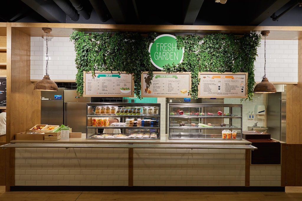 Kochplatte (Ceranfeld, 4 Kochplatten), Wasserkocher, Kaffeemaschine, Backofen, Kombi-Mikrowelle, Spülmaschine, Kühlschrank (+ Gefrierfach)