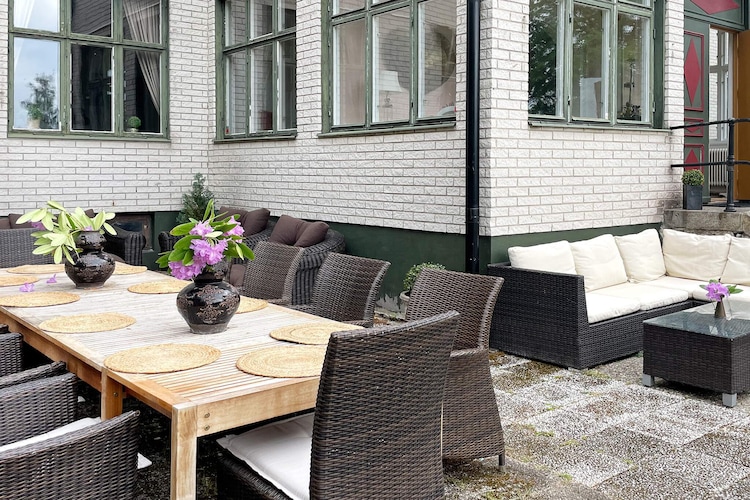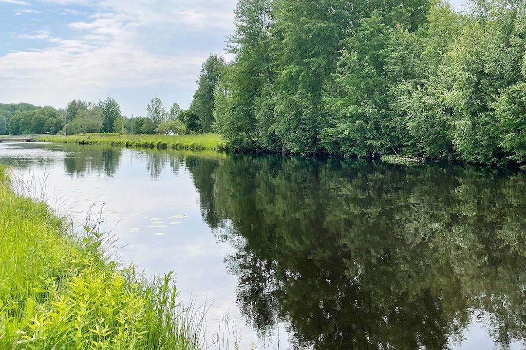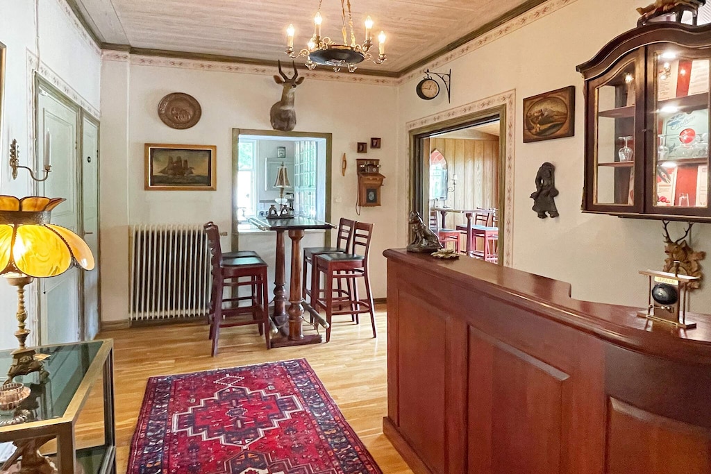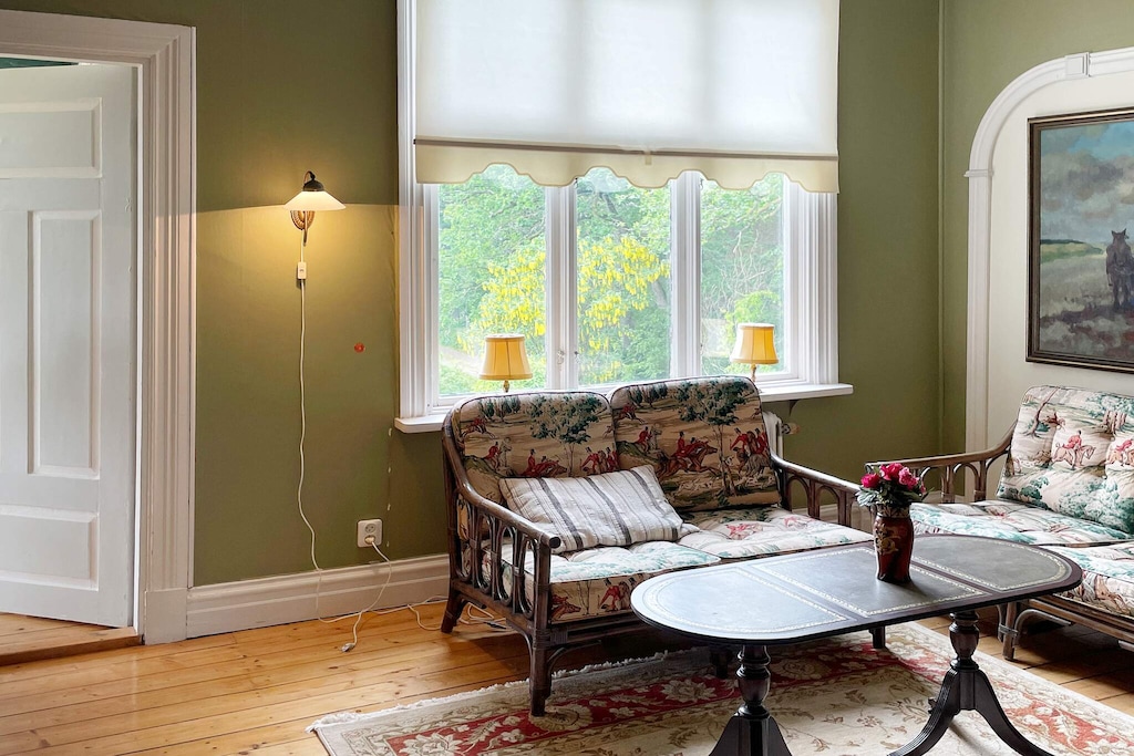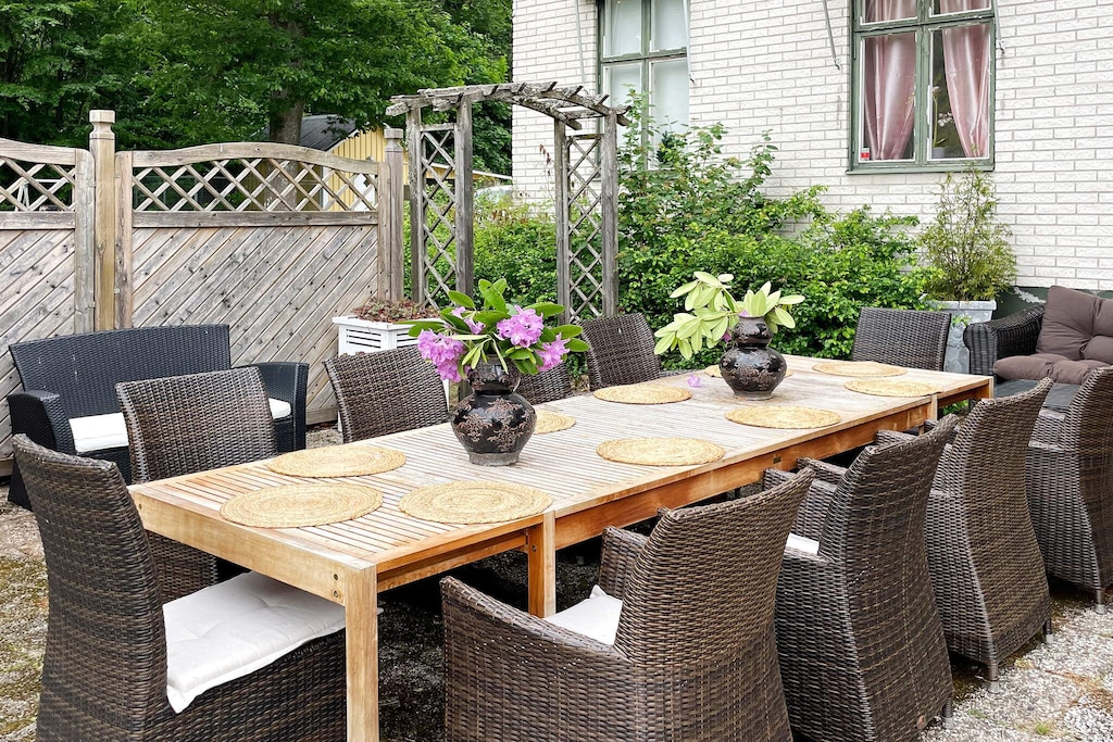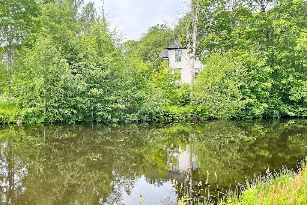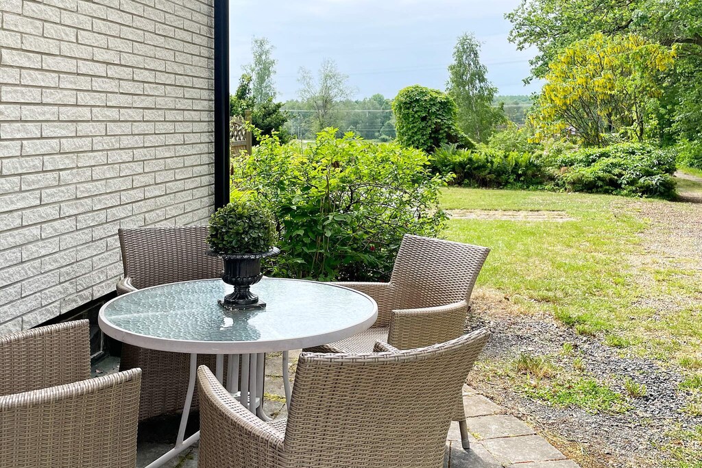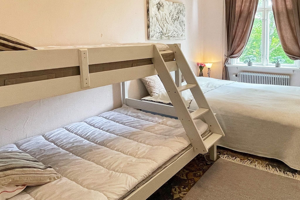 Willkommen in Blekinge, wo Sie hier Freunde und Familie in dieser fantastischen Unterkunft in wunderschöner Umgebung, direkt neben Mörrumsån, versammeln können. Das aus dem 19. Jahrhundert stammende Feriendomizil wurde in der Nachkriegszeit sowohl als Privathaus als auch für Aktivitäten des Roten Kreuzes genutzt. Heute dient es als einladende Unterkunft für bis zu 21 Personen. Bereits am Haupteingang auf der Veranda werden Sie von einem einladenden, schönen und modernen Interieur begrüßt. Das sorgfältig renovierte Gebäude, mit gut erhaltenen Fenstern und hohen Decken, präsentiert sich modern und zugleich mit etwas nostalgischem Charme. Hier findet man Ruhe und das Familienleben verteilt sich vom Spielzimmer über den Gesellschaftsraum bis hin zum Esszimmer. Eine geräumige Küche, mit allen Möglichkeiten zur Selbstversorgung und mit großem Kühlschrankraum zur Aufbewahrung von Speisen und Getränken, steht ebenfalls zur Verfügung. Die gut proportionierten Schlafzimmer, mit unterschiedlicher Anzahl an Schlafplätzen und Stauraum, sind mit schönen Details in verschiedenen Stilrichtungen ausgeschmückt. Die meisten Schlafzimmer verfügen über ein Doppelbett, es gibt jedoch auch einige Familienzimmer mit Etagenbetten, die auf beiden Ebenen verteilt sind. Ein größeres Familienzimmer im Obergeschoss an der Vorderseite, mit großen Fenstern mit Ausblick, bietet Platz für viele Personen auf dem Sofa vor dem Smart-TV. In Nebenräumen gibt es Spielzeug für die Kinder, darunter eine Schulbank aus der Vergangenheit. Die Speisesäle im Erdgeschoss bieten Platz für alle 21 Personen, ideal für gemeinsame und gemütliche Mahlzeiten. Im Obergeschoss befinden sich zwei Badezimmer, eines davon mit Dusche und Badewanne. Insgesamt gibt es 4 Toiletten, verteilt auf das Ober- und das Erdgeschoss. Draußen können sich alle auf der möblierten Terrasse zum Grillen und für gemeinsame Aktivitäten versammeln. Im Garten gibt es Geschichte in Form von zwei „Königssteinen“, die bei jedem die Neugier wecken können, mehr darüber zu erfahren. Auf dem Grundstück des Hauses gibt es Gewässer, so dass Kinder beaufsichtigt werden müssen. Darüber hinaus grenzt der Garten an ein Naturschutzgebiet, in dem für den Aufenthalt bestimmte Verhaltensregeln gelten. Alarmanlage im Haus. Der Badebereich am Seeufer des Abborresjön, mit Sandstrand und Steg, ist zu Fuß oder eine kurze Autofahrt vom Haus entfernt. Möglichkeit zum Wandern in den wunderschönen Laubwäldern des Naturschutzgebiets und natürlich für Angler der berühmte Lachsfluss Mörrumsån. Eine kurze Fahrt bringt Sie nach Karlshamn, eine gemütliche Kleinstadtidylle, die im Sommer täglich Einkaufsmöglichkeiten, Restaurants am Kai und Schärentouren bietet. Das Kreativum Science Center, ein Wissenschaftszentrum für Neugierige jeden Alters, ist sehr zu empfehlen. Willkommen in Blekinge, „Schwedens Garten“!