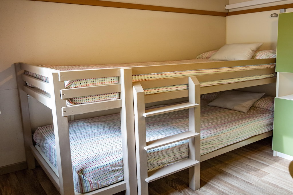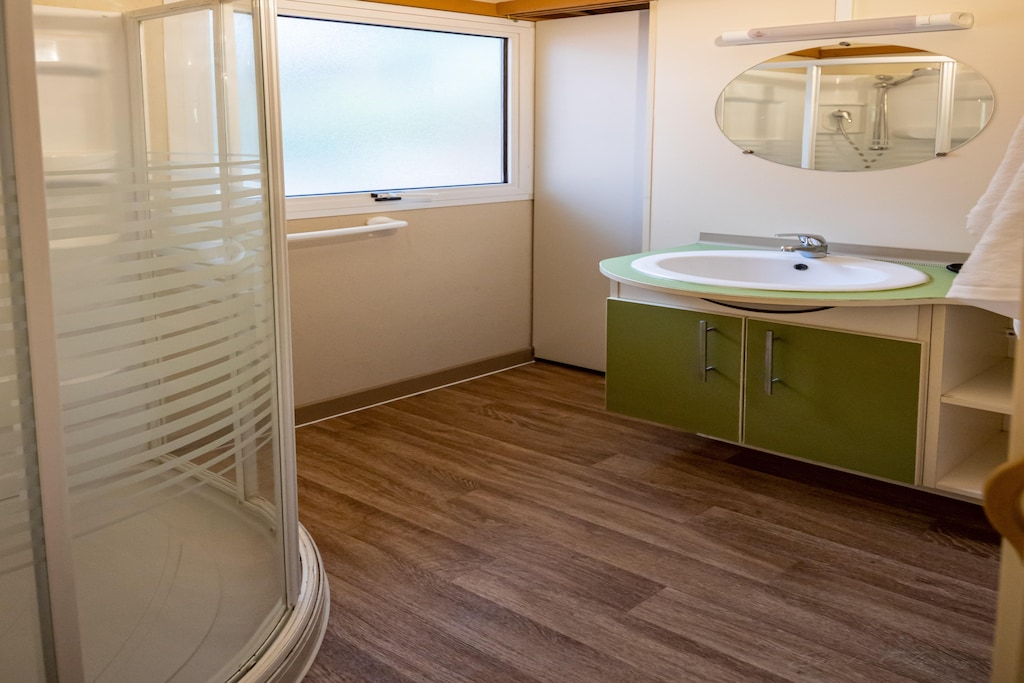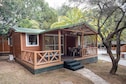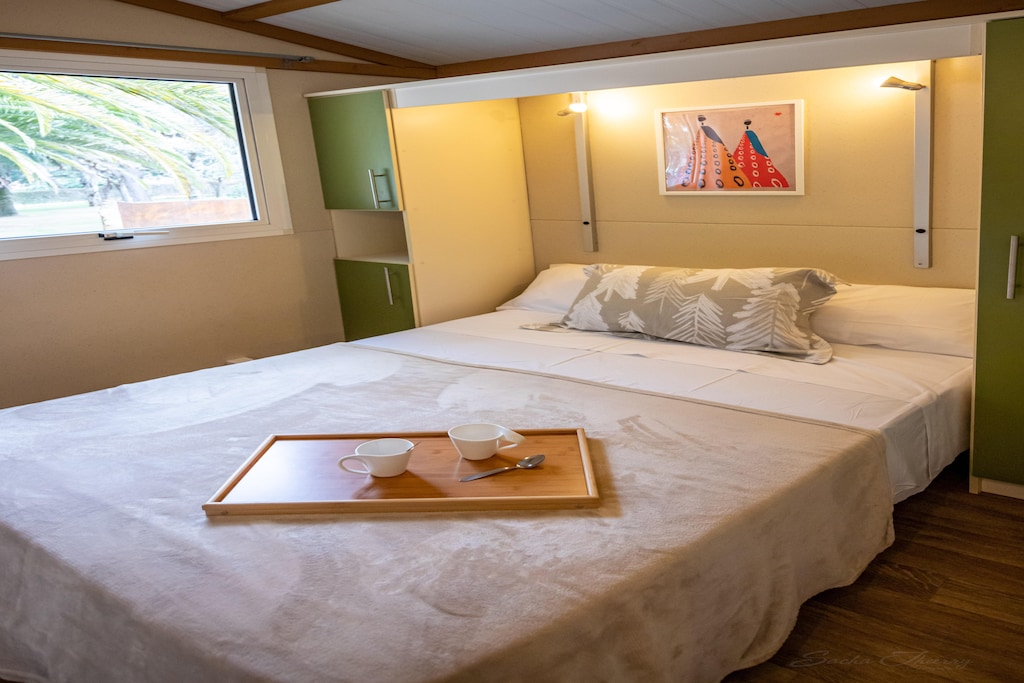 Unser charmanter Holzbungalow bietet Platz für bis zu sechs Gäste und verfügt über drei komfortable Schlafzimmer auf 33,75 m² Wohnfläche, ergänzt durch eine geräumige 12,50 m² große Terrasse. Genießen Sie modernen Komfort mit Klimaanlage, die Sie an warmen Sommertagen kühl hält.