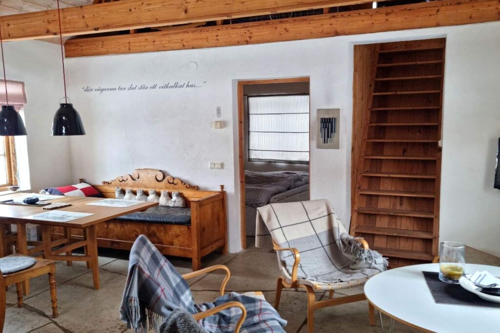 Dieses Haus bei Ardre steht auf einem großen Grundstück mit Wildzaun ringsum und Ausblick in die grüne Umgebung. Die Gegend wurde bereits zur Wikingerzeit besiedelt, davon zeugen noch heute viele Kulturdenkmäler, von denen Sie einige mit dem Fahrrad erreichen. Falls Sie mit der Geschichte der Wikinger vertraut sind, ist es vielleicht interessant zu wissen, dass die berühmten Steine von Ardre einst genau an der Stelle gefunden wurde, an der sich dieses Haus befindet. Das Haus verfügt über zwei Terrassen, sodass Sie in der Morgensonne frühstücken und auch den Sonnenuntergang bis zum letzten Sonnenstrahl beobachten können. Dort können Sie dann das Abendessen draußen auf dem Holzkohlegrill zuzubereiten, während die Abendsonne den Himmel rot verfärbt und die nächtliche Ruhe sich ausbreitet. Das Haus ist im traditionellen gotländischen Stil gebaut, mit verputzten Steinwänden und einem Fußboden aus gotländischem Marmor mit Fußbodenheizung. Es hat einen offenen Grundriss zwischen Wohnzimmer, Essecke und Küche mit Platz für das Familienleben. Außerdem gibt es zwei Schlafzimmer im Haus; eines mit einem sehr bequemen Doppelbett, das andere Zimmer mit zwei schönen Einzelbetten. Das Badezimmer des Hauses ist frisch und funktional und mit einer Waschmaschine ausgestattet. Oben auf dem Schlafboden, den man über eine recht steile Treppe erreicht, gibt es zwei weitere Schlafplätze; ein Bett und ein bequemes Schlafsofa. Hunde sind willkommen und können sich draußen auf dem eingezäunten Gelände frei bewegen. Im Haus bitte keine Vierbeiner in den Möbeln oder auf den Betten erlauben! Vitvärsfiskeläge ist einen Besuch wert, Sie können es leicht mit dem Fahrrad erreichen, vielleicht wenn Sie auf dem Weg nach unten zu einem Tag am Strand in Ljugarn sind. In der Nähe von Ljugarn gibt es alles von schönen Badestränden bis hin zu Restaurants und Cafés.