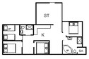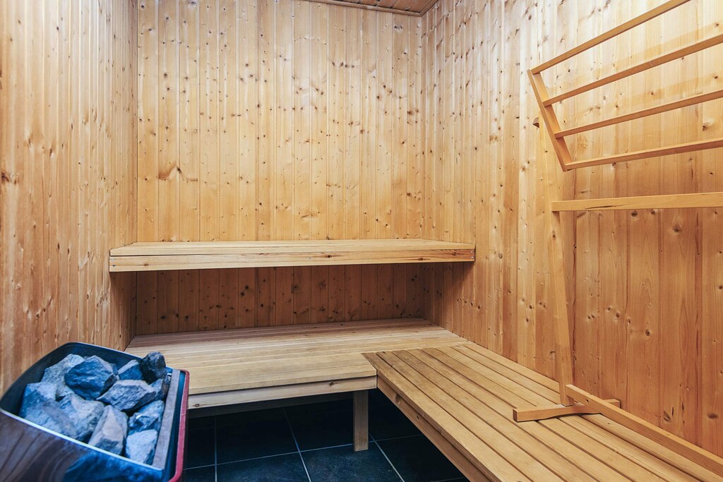 Sauna und die Aufteilung der fast gleich großen Zimmer