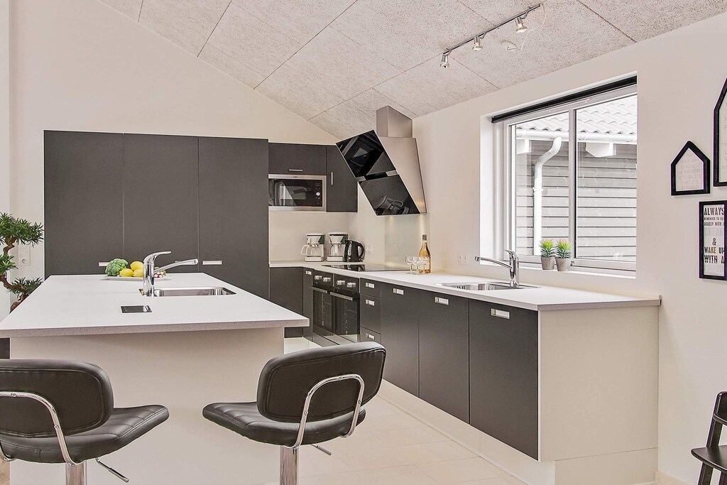 Der modern und großzügig gestaltete Koch- und Essbereich. Die bodentiefen Fenster zum Innenhof und d