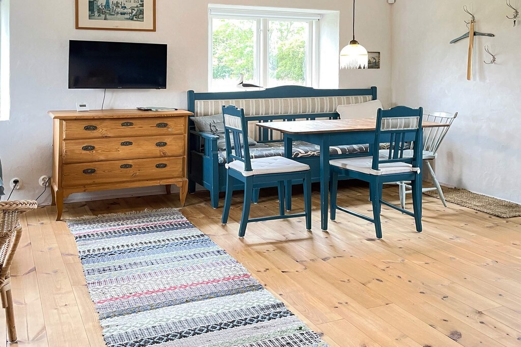 Inmitten der reizvollen Landschaft der Region Skåne bekommen Sie hier die Möglichkeit für einen Urlaub auf einem Bauernhof. Sie bewohnen ein 2023 neu fertiggestelltes Wohnteil. Hier wurde an alles, bis ins kleinste Detail gedacht. Nicht zuletzt das Handwerk wurde mit Präzision kunstvoll ausgeführt. Sie haben einen schönen Ausblick auf die Felder ringsum und eine schöne Terrasse im Außenbereich zur Verfügung, die zum Grillen einlädt. Frischen Fisch gibt es z.B. in Kåseberga zu kaufen. Das Ferienhaus hat einen offenen Küchen-/Wohnbereich für das Familienleben im Erdgeschoss. An kühleren Tagen ist hier Platz für Gesellschaftsspiele, zudem Chromecast zur Unterhaltung. Schlafsofa für eine Person im Wohnbereich. Zum Ferienhaus gehört auch ein geräumiges Badezimmer mit Dusche sowie praktischem Waschtrockner. Auf der oberen Ebene befinden sich zwei Schlafzimmer; eines mit zwei Einzelbetten, das andere mit der Möglichkeit, die Betten als Doppelbett oder zwei Einzelbetten zu nutzen. Ruhige Lage auf dem Lande in idyllischer Umgebung, ideal um die Ausflugsziele der Region Österlen zu entdecken.