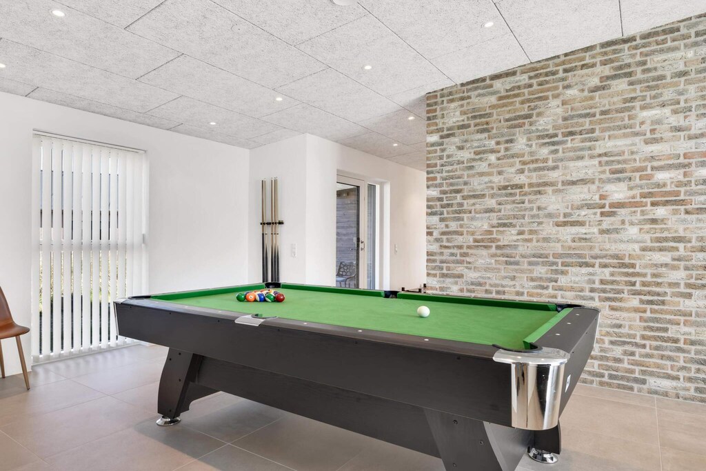 Attraktives, modernes Ferienhaus von 2022 für bis zu 8 Personen und 1 Kind unter 3 Jahren. Innen erwarten Sie helle Räumlichkeiten und der typisch skandinavische, schlichte und helle Stil mit wohnlicher Atmosphäre. Die beiden Badezimmer sind geräumig und modern. Die Küche und der Wohnbereich sind offen und somit ideal für das Familienleben. Dazu gibt es einen Aktivitätsraum mit Billard und Tischtennis für den Freizeitspaß. Bettenverteilung: 2 Doppelbetten, 2 Einzelbetten und 2 Schlafplätze auf dem Schlafsofa. Außerdem 1 Kinderbett (f. unter 3 Jahre). Außenbereich: An schönen Sommertagen lädt der Außenbereich des Ferienhauses zum Sonnenbaden, Spielen und Entspannen ein. Für die Kinder steht ein Gartentrampolin zur Verfügung (Nutzung nur auf eigenes Risiko). Geschützte Sitzecke auf der Terrasse mit Zugang vom Wohnzimmer aus. Sie wohnen hier weniger als einen Kilometer von der Nordsee entfernt, wo Sie der herrliche Sandstrand erwartet. Im näheren Umkreis des Hauses findet man zudem gute Einkaufs- und Transportmöglichkeiten sowie Restaurants. Das Rauschen sowie Jugendgruppen sind im Haus nicht erwünscht. Bitte bestellen Sie ggf. gewünschte Wäschepakete gleich bei der Buchung mit.