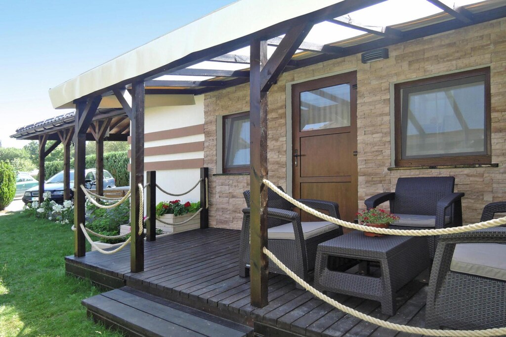 Modern und geschmackvoll eingerichtetes Ferienhaus mit WLAN und großen, überdachten Terrassen in dem ruhigen Seebad Miedzywodzie. Familien mit Kindern hier herzlich willkommen: Auf dem gepflegten, teilweise umzäunten Grundstück gibt es einen Swimmingpool und einen Whirpool. Und der feine, breite Sandstrand lädt zum Burgen bauen, Muscheln sammeln und Erholen ein.