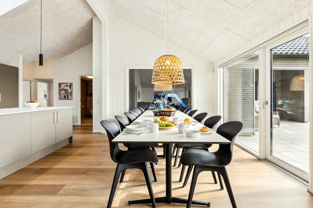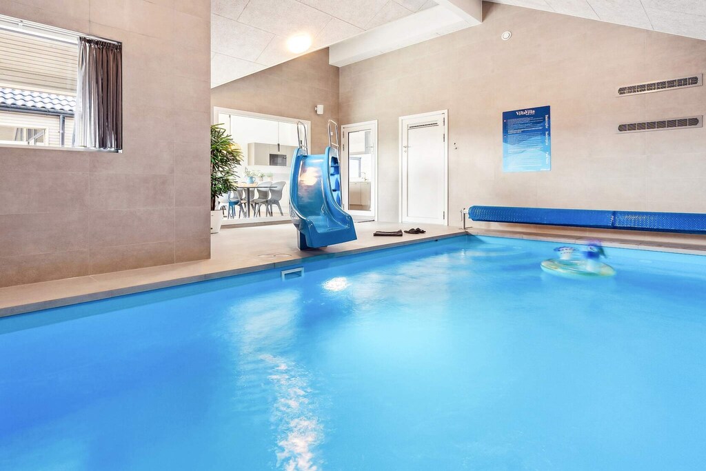 Dieses beeindruckende Ferienhaus in der Nähe von Hasmark Strand ist die perfekte Wahl für große Familien oder Gruppen von Freunden, die einen aktiven und dennoch entspannten Urlaub am Meer verbringen möchten. Mit Platz für bis zu 14 Gäste und einer Vielzahl an spannenden Annehmlichkeiten bietet das Haus Komfort, Unterhaltung und Raum für alle, um gemeinsam eine schöne Zeit zu verbringen. Die großzügige Aufteilung umfasst fünf Schlafzimmer, eines davon mit einem Doppelbett und Etagenbetten, sowie einen hellen, offenen Wohnbereich, der sich ideal für geselliges Beisammensein eignet. Der Aktivitätsraum ist bei Gästen jeden Alters sehr beliebt und bietet Tischtennis, Billard, Tischfußball und Darts. Im Herzen des Hauses finden Sie eine voll ausgestattete Küche, ein gemütliches Wohnzimmer mit einem Holzofen und einen großen Essbereich – perfekt für gemeinsame Mahlzeiten und Spieleabende. Ein besonderes Highlight ist der beheizte Innenpool mit Gegenstromanlage und einer lustigen Wasserrutsche, der Kindern und Erwachsenen stundenlangen Spaß bietet. Im Außenbereich können sich die Gäste im Spa oder in der Sauna entspannen oder sich nach einem Tag am Strand unter der Dusche abkühlen. Die große, sonnige Terrasse ist ideal für Mahlzeiten im Freien, zum Entspannen oder einfach zum Genießen der Ruhe und Stille. Der Außenbereich ist mit einem Bouleplatz, Schaukeln und einem Trampolin perfekt zum Spielen und Entspannen geeignet. Das Haus liegt nur einen kurzen Spaziergang vom Hasmark Strand entfernt – einem der familienfreundlichsten Strände Fünen – und ist somit ideal für Strandtage und Ausflüge in die Umgebung. Erkunden Sie das Naturschutzgebiet Enebærodde zu Fuß oder mit dem Fahrrad, besuchen Sie die nahe gelegene Stadt Otterup mit ihren lokalen Geschäften und Märkten oder machen Sie einen Ausflug zum Fjord & Bælt in Kerteminde, um mehr über das Meeresleben zu erfahren und Robben aus nächster Nähe zu beobachten. Ein Ladegerät für Elektroautos ist im Haus vorhanden, was es für umweltbewusste Reisende besonders praktisch macht.