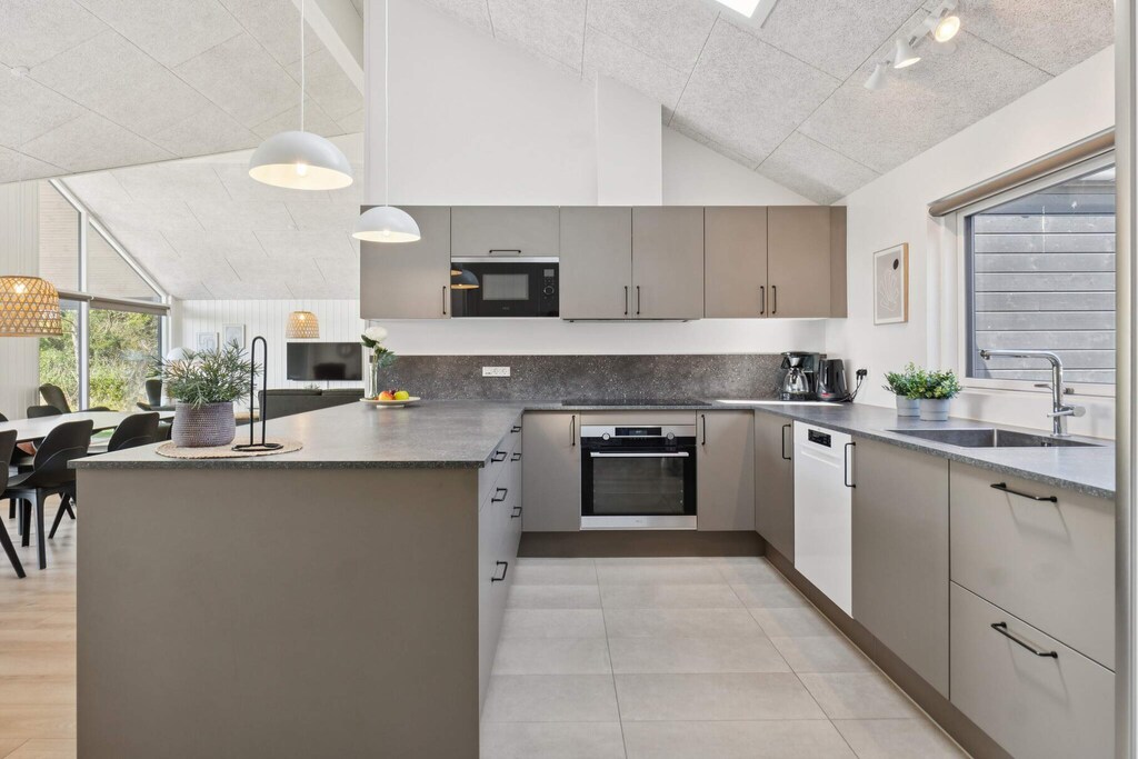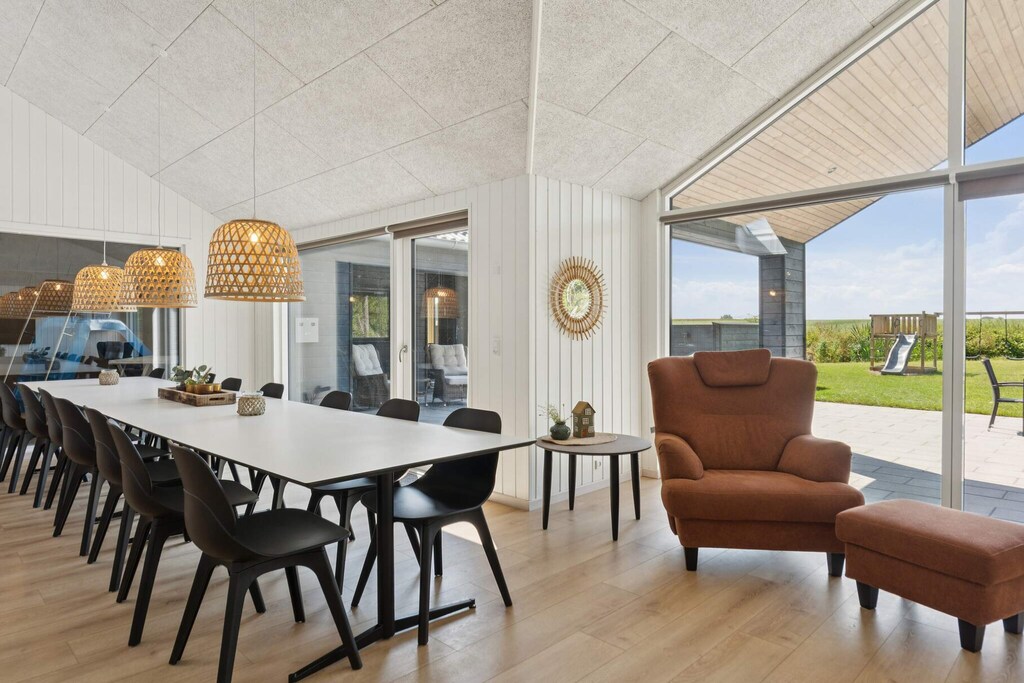 Dieses Ferienhaus am Hasmark Strand bei Otterup ist eine wahre Oase der Entspannung und Unterhaltung. Hier finden Sie nicht nur einen erfrischenden Pool mit Schwimmtrainer und Wasserrutsche, sondern auch einen Außen-Spa und eine Sauna. Ob Sie entspannen oder Ihren Puls in die Höhe treiben möchten – hier ist für jeden etwas dabei. Mit seinen sechs Schlafzimmern, zwei Lofts und drei schönen Badezimmern bietet es Platz für bis zu 16 Personen und ist somit ideal für große Familien oder Gruppen von Freunden. Das gemütliche Wohnzimmer ist der Mittelpunkt der Entspannung,wo Sie sich am Holzofen versammeln und die Gesellschaft der anderen genießen können. Die Küche ist mit allem ausgestattet, was Sie für die Zubereitung köstlicher Mahlzeiten benötigen, und der lange Tisch bietet Platz für alle. Nach dem Abendessen können Sie in den Aktivitätsraum gehen und Ihre Freunde zu einer Runde Tischfußball, Tischtennis oder Billard herausfordern. Es gibt auch eine Dartscheibe und eine Bar, an der Sie Ihre Lieblingsgetränke genießen können. Ein Spielautomat mit über 200 Spielen und eine PS5 stehen ebenfalls im Haus zur Verfügung. Der Außenbereich ist ebenso beeindruckend wie der Innenbereich. Sie können köstliche Mahlzeiten grillen, in den Gartenmöbeln oder im Lounge-Set entspannen und den Kindern beim Spielen auf dem Spielturm, der Schaukel und der Rutsche zusehen. Für Abenteuerlustige gibt es sogar ein Bodentrampolin. Wenn Sie also nach dem perfekten Ferienhaus für Ihren nächsten Sommerurlaub suchen, sind Sie hier genau richtig. Dieses Ferienhaus am Hasmark Beach bietet alles, was Sie brauchen, um mit Ihren Lieben unvergessliche Erinnerungen zu schaffen. Nicht für Jugendgruppen verfügbar.