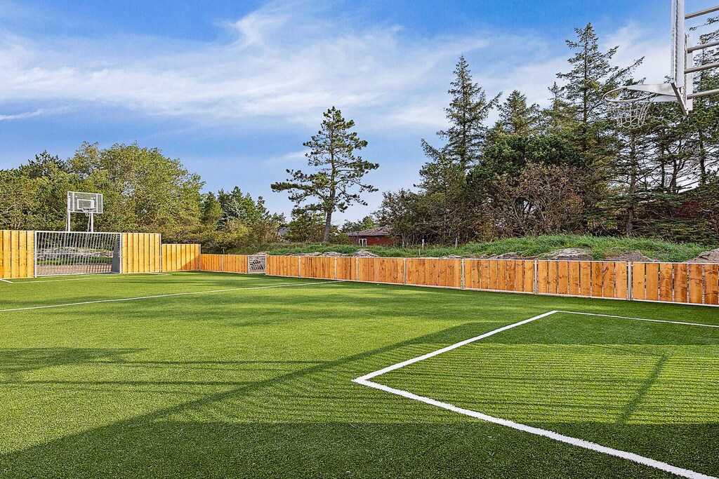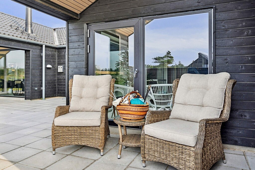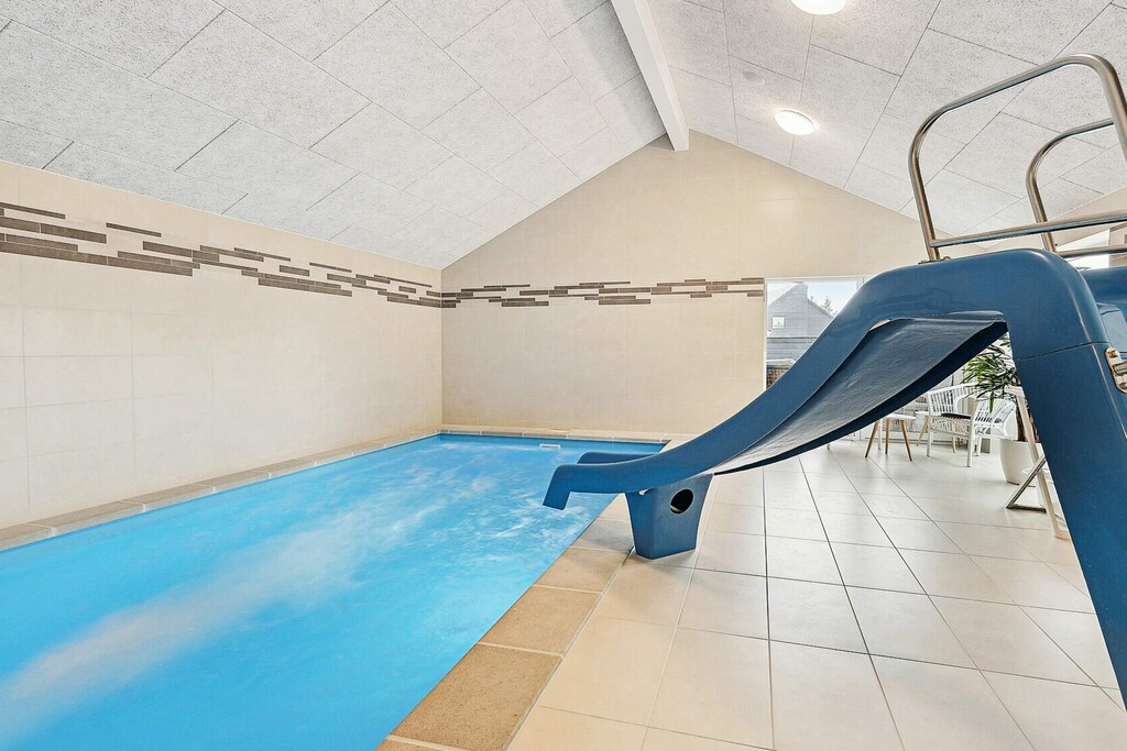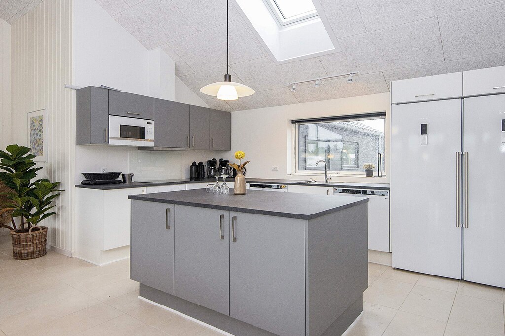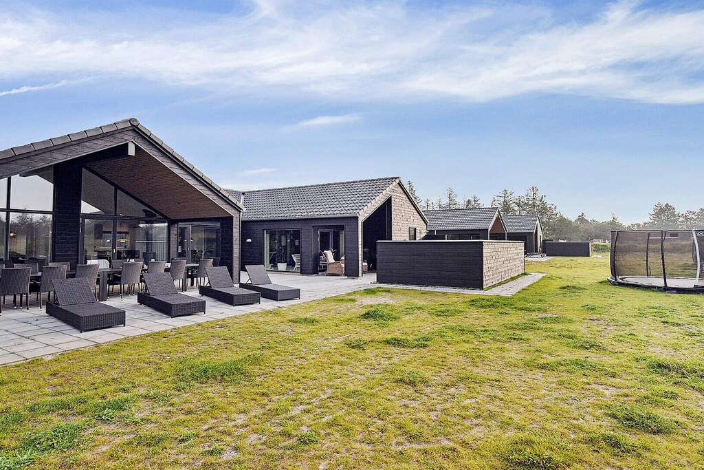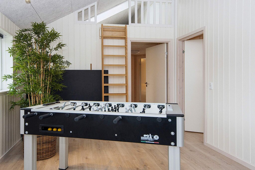 Schönes Ferienhaus mit Pool, Whirlpool und Sauna, nur 350 Meter vom Wasser auf Rømø entfernt.Das geräumige Ferienhaus ist ideal für einen Urlaub mit der ganzen Familie. Es bietet Platz für bis zu 18 Personen und bietet zahlreiche Aktivitäten, eine gemütliche Umgebung und eine optimale Raumaufteilung für mehrere Familien. Der eigene Poolbereich mit zusätzlichen Sitzgelegenheiten bietet zu jeder Jahreszeit Bademöglichkeiten. Der Pool ist 17 m² groß und verfügt über eine römische Treppe. Das Wellness-Feeling setzt sich auch im Freien fort, wo sowohl ein schöner Whirlpool als auch eine Außensauna für ein entspannendes Bad sorgen. Der gemütliche Aktivitätsraum lädt zu stundenlangem Spaß ein, wenn die ganze Familie sich bei verschiedenen Aktivitäten messen möchte. Hier finden Sie Billard, Tischtennis, Tischfußball und Darts – und es gibt auch Platz für Zuschauer! Außerdem gibt es eine gemütliche Fernsehecke mit PlayStation 4 und die Möglichkeit, bei einem guten Film zu entspannen. In der Mitte des Ferienhauses befindet sich die gut ausgestattete Küche, in der sich problemlos große Familienessen zubereiten lassen. Zum Abendessen kann die ganze Familie am Küchentisch Platz nehmen – Platz ist natürlich auch für die ganze Truppe. An kühlen Tagen können Sie den Holzofen im Wohnzimmer anheizen und dabei auf dem Sofa einen guten Film genießen. Bei schönem Wetter lädt die teilweise überdachte Terrasse zu Aktivitäten und Gemütlichkeit ein. Hier finden Sie Gartenmöbel und einen Grill sowie ein Bodentrampolin im Garten, auf dem sich die Kinder austoben können (Benutzung auf eigene Gefahr/Versicherung). Das Ferienhaus verfügt über zwei Schlafbereiche mit angrenzenden Badezimmern. Insgesamt gibt es sieben Schlafzimmer. Zusätzlich gibt es vier Schlafplätze auf einem der beiden Dachböden. Der Verbrauch wird mit dem Hausmeister abgerechnet. Bitte beachten Sie: Die Fotos stammen von einem ähnlichen Haus. Nicht zur Vermietung an Jugendgruppen verfügbar. Bitte beachten Sie! Das Gebiet befindet sich derzeit im Umbau.