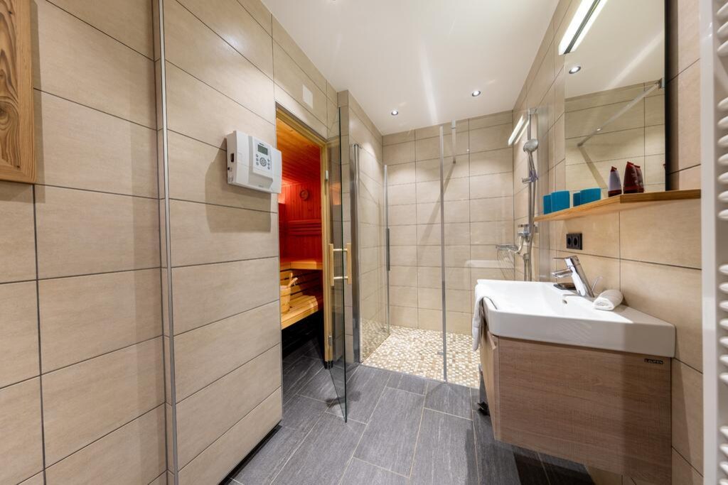 Ihr Chalet, das Sie natürlich alleine bewohnen, verfügt über mindestens zwei Etagen, ggf. auch drei. Eine der Etagen ist die Wohnetage, die mit ihren riesigen Fensterpartien eine überragende Aussicht bietet. Neben einem Wohn- und Essbereich mit gemütlichem Holzofen gibt es eine moderne offene Küche, die mit aktuellen Geräten ausgestattet ist. Die Schlafzimmer, die sich über die Etagen verteilen, sind sehr gemütlich und hochwertig eingerichtet. Darüber hinaus verfügen Sie über eine eigene, private Sauna.