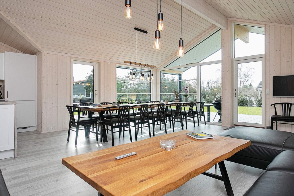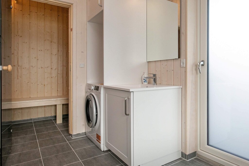 Det var god plads, og huset var bygget op så man kunne have hver sin afdeling i huset, Vi er noget frustreret over at det står i papirerne i huset at udendørs spaen er selvdocerende med klor, da vi havde børn med hvor alle fik udslæt og den mindste blev indlagt på sygehuset pga bakterier i vandet, Vi kontaktede det lokale kontor som fortalte os at det ikke passede at det var vandet, men det har vi altså dokumentation på fra læge/sygehus, De svarede at vi selv skulle putte klor i vandet, det fik vi så først om fredagen, men da var alle børn syge, så vi brugte den ikke mere,