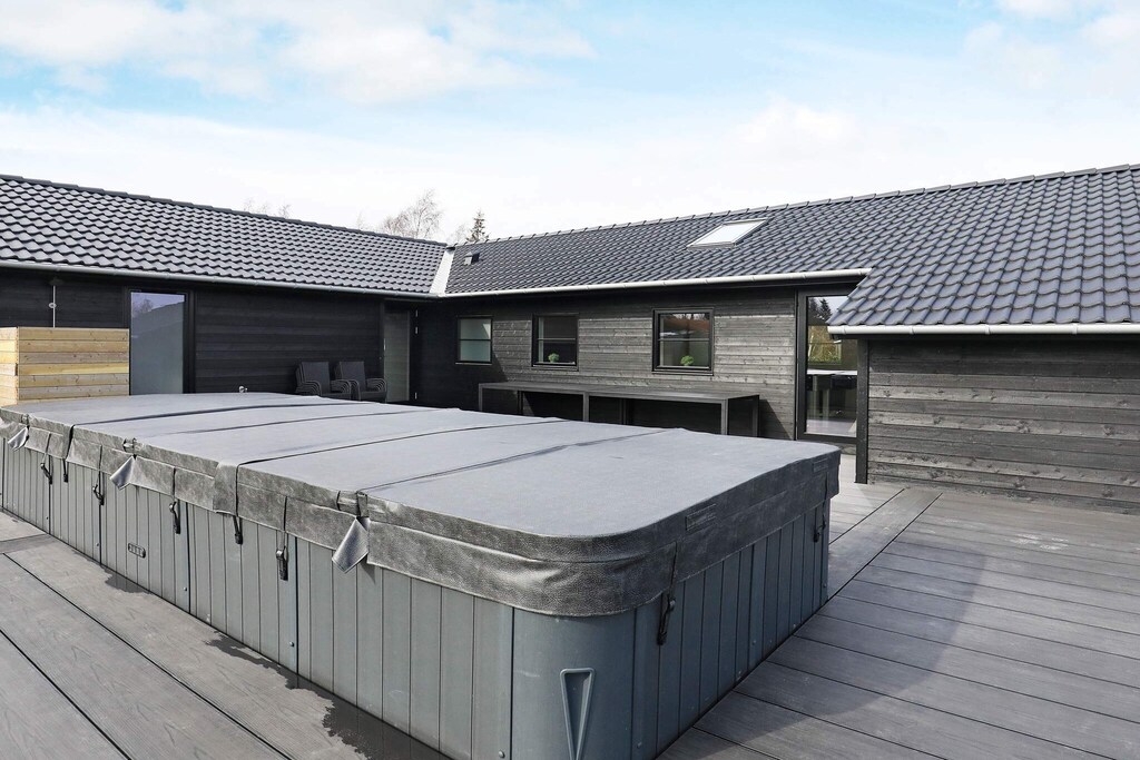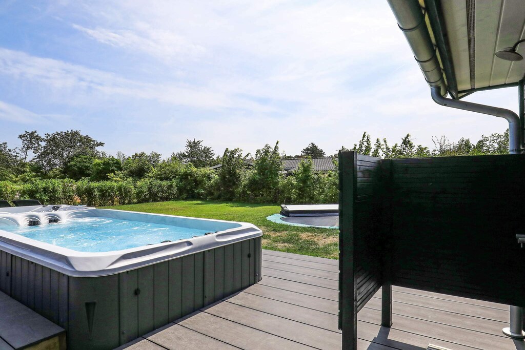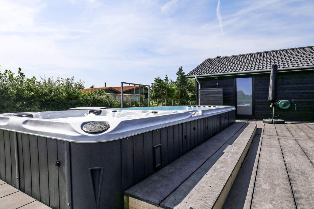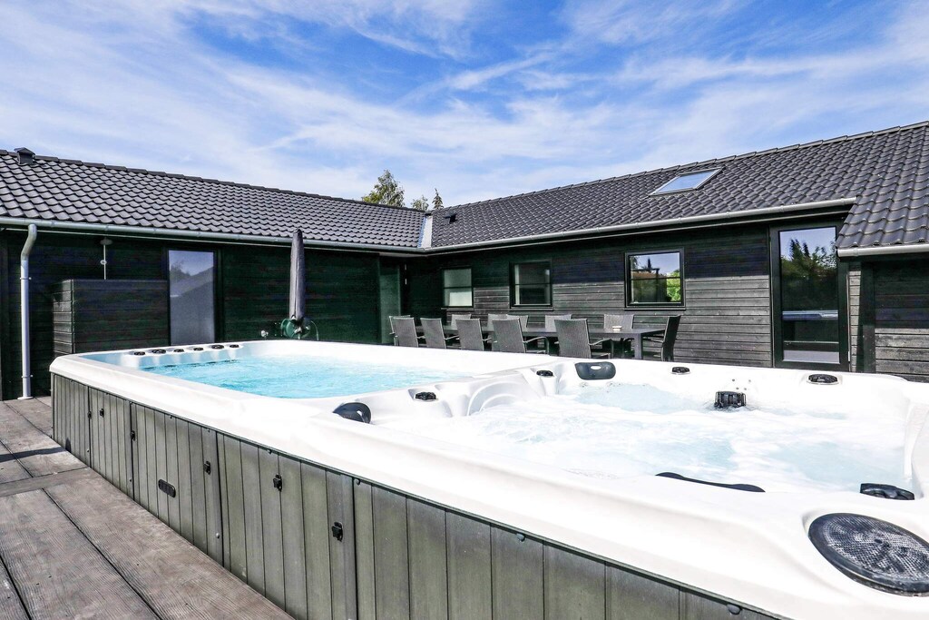 Ferienhaus mit besonders großem Außen-Whirlpool für bis zu 5 Personen sowie Whirlwanne für 2 Personen und Sauna im Innenbereich. Weiterhin stehen ein Aktivitätsraum für den Freizeitspaß sowie Holzofen und WLAN zur Verfügung. Das Ferienhaus liegt nur einen Steinwurf von der Ortsmitte in Marielyst und nicht weit von einem der attraktivsten Ostseestrände des Landes entfernt. Der große Außen-Whirlpool hat zwei Bereiche: der eine ein üblicher Whirlpool mit Massage- und diversen anderen Funktionen, im zweiten kann man sogar schwimmen. Das moderne Ferienhaus ist hell und modern, mit ansprechendem Mobiliar und passenden Accessoires eingerichtet. Wohnraum und Küche sind offen kombiniert und verfügen über einen Holzofen. Zur Küchenausstattung gehören u.a. auch Ceranfeld, Geschirrspüler und Mikrowelle. Sicherlich werden Sie viele vergnügliche Stunden im sogenannten Aktivitätsraum verbringen, wo die ganze Familie bei einer Partie Tischtennis, Billard, Tischkicker oder an der PlayStation4 wetteifern kann. Das größte der drei Badezimmer ist mit Whirlwanne, Sauna für 3 Personen und Dusche ausgestattet. Das Haus verfügt zudem über eine Wärmepumpe und Fußbodenheizung. Für Kinder steht ein Hochstuhl zur Verfügung. Zudem extra Fernseher vorhanden. Im Außenbereich gibt es teilweise überdachte Terrassenflächen, auf denen Sie die schönen Sommertage genießen können. Der Außen-Whirlpool ist das ganze Jahr über nutzbar. Auf dem Grundstück zudem Petanquebahn, Schaukel, Feuerstelle für Lagerfeuer und Gartentrampolin (Nutzung nur auf eigenes Risiko!). Angelfreunde werden sich über die Filetierbank mit fließend Wasser draußen freuen, auf der sie ihren Fang des Tages verarbeiten können. \ Die Aufnahmen des Außen-Whirlpools sind Modellfotos. Kaution und Nebenkosten werden im Servicebüro abgerechnet. Keine Vermietung an Jugendgruppen erwünscht!