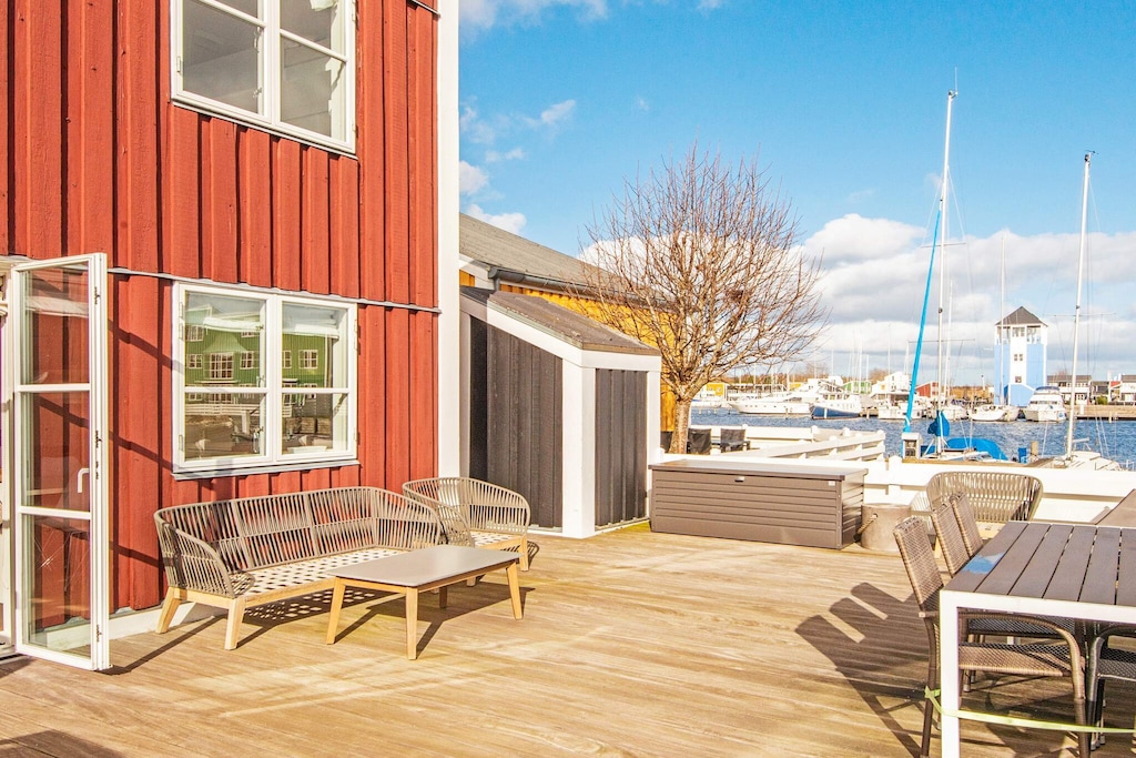 Diese attraktive Ferienwohnung befindet sich in einem der Stadthäuser des Øer Maritime Ferieby Resorts. Das Anwesen genießt eine besonders schöne Lage ohne Durchgangsverkehr und bietet Ruhe und Privatsphäre. Sowohl die Wohnung als auch die Terrasse bieten einen herrlichen Blick auf die vorbeifahrenden Boote und schaffen eine entspannte maritime Atmosphäre. Die gut ausgestattete Wohnung ist modern eingerichtet und legt Wert auf Komfort und Gemütlichkeit. Im Obergeschoss befinden sich zwei Schlafzimmer für vier Personen, während ein Doppelschlafsofa im Flur zusätzlichen Schlafplatz bietet. Die Wohnung ist ideal für Familien oder kleine Gruppen, die eine praktische und komfortable Unterkunft in Wassernähe suchen. Die schönsten Sandstrände von Ebeltoft sind nur etwa 700 Meter entfernt und laden zum Schwimmen, Sonnenbaden und für andere Küstenaktivitäten ein. Gäste können die Sportanlagen des Resorts gegen Aufpreis nutzen. Tischtennis kostet 20 DKK pro Stunde, Badminton 40 DKK pro Stunde, Tennis 60 DKK pro Stunde und Paddle-Tennis 100 DKK pro Stunde. Der Zugang zum Schwimmbad kostet für alle Haushaltsmitglieder 60 DKK pro Tag. Diese Einrichtungen bieten zahlreiche Möglichkeiten für aktiven Spaß während Ihres Aufenthalts. Diese Ferienwohnung vereint eine erstklassige Lage am Wasser, eine komfortable, moderne Einrichtung und einfachen Zugang zum Strand und zu Freizeiteinrichtungen und ist somit eine ausgezeichnete Wahl für einen erholsamen und angenehmen Urlaub. Bitte beachten Sie, dass die Vermietung an Jugendgruppen nicht gestattet ist.Kurz vor Ihrem Ankunftsdatum kann eine rückzahlbare Kaution erhoben werden. Die Kaution stellt sicher, dass Ihr Aufenthalt reibungslos verläuft, und deckt eventuelle Zusatzleistungen oder Verbrauchskosten ab.Diese Kaution deckt den Verbrauch von Nebenkosten während Ihres Aufenthalts sowie zusätzliche in Anspruch genommene Leistungen ab.Der endgültige Betrag wird anhand der tatsächlichen Zählerstände und Nutzung zusätzlicher Services angepasst. Ein etwaiger Restbetrag wird Ihnen innerhalb von 21 Tagen nach dem Check-out zurückerstattet.Die Kaution dient lediglich als Vorauszahlung für Leistungen, die Sie ohnehin bezahlen würden, und ermöglicht einen reibungslosen Ablauf Ihres Aufenthalts und Check-outs.