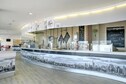 Esstisch, Kochplatte (4 Kochplatten, Ceranfeld), Toaster, Kaffeemaschine, Backofen, Mikrowelle, Kühlschrank