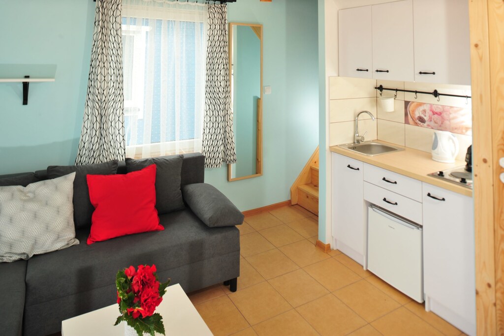 Ferienanlage mit kleinen, neu erbauten Häusern, nur 700 Meter vom Ostseestrand entfernt. Alle Häuser sind hell und freundlich eingerichtet und haben eine eigene Terrasse mit Gartenmöbeln und Grill. In der Anlage befindet sich ein Spielplatz mit einem großen Sandkasten zum Buddeln.