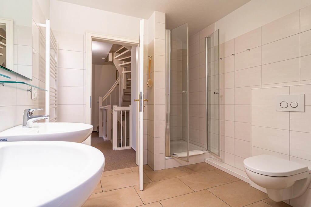 Dusche, Waschbecken, Toilette, Waschmaschine