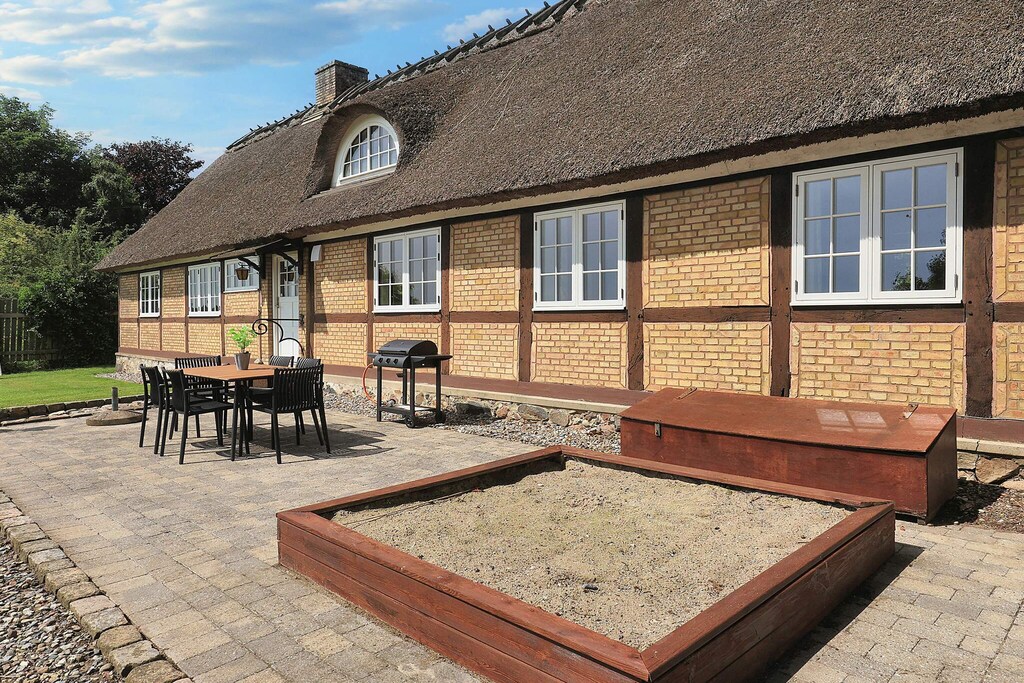 „Huset Jomsborg“ Inmitten der hügeligen Landschaft von Stevns, wo sich Felder so weit das Auge reicht, liegt das Haus „Jomsborg“. Dieses charmante Haus ist wie eine Zeitkapsel, in der die Flügel der Geschichte noch immer durch die Luft tanzen. Von der rustikalen Terrasse aus genießen Sie den Blick auf die goldenen Kornfelder, die sich bis zum Horizont erstrecken. Das Haus grenzt an ein altes Herrenhaus, und man kann den Geist der Geschichte zwischen den alten Steinen förmlich spüren. Im Inneren verbinden sich authentischer Landhausstil und moderne Ausstattung mit historischem Charme. Das Haus verfügt über ein großes Wohnzimmer, eine helle Küche mit Essbereich, drei Schlafzimmer, eines mit Doppelbett und zwei mit je zwei Einzelbetten. Außerdem gibt es zwei Badezimmer, eines mit Waschmaschine und Trockner, das andere mit einer nostalgischen Badewanne. Der Garten ist eine Oase der Ruhe und Schönheit. Der nahe gelegene Wald lädt zu langen Spaziergängen und zum Entspannen ein. Das Haus ist auch ideal für Kinder. Der Garten bietet viel Platz zum Spielen und Toben. Das Haus „Jomsborg“ ist mehr als nur ein Haus – es ist ein Zuhause, in dem Geschichte auf Gegenwart trifft und Stille die Seele umarmt. Ein Ort, an dem man Ruhe, Besinnung und Gegenwart findet, fernab vom Lärm der Stadt.Nicht an Jugendgruppen vermietbar.Die Endreinigung ist im Preis inbegriffen.