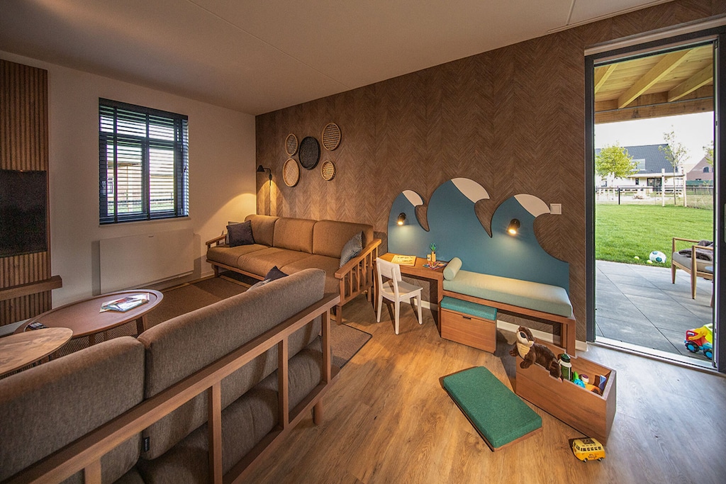 Das Anwesen ist eine geräumige, familienfreundliche Ferienvilla mit etwa 205 m² luxuriöser Unterkunft. Es verfügt über sechs Schlafzimmer, darunter ein speziell eingerichtetes Kinderzimmer mit maßgefertigten Kinderbetten, und einen eingezäunten Hinterhof, der an einen großen, umzäunten Spielplatz grenzt. Die Villa bietet bequem Platz für bis zu 12 Gäste und sorgt mit Sicherheitsgittern oben und unten an der Treppe für eine kindersichere Umgebung.