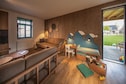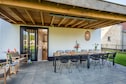 Die Wohnbereiche sind hell und luftig und umfassen einen Sitzbereich, einen Essbereich, einen Fernseher und einen eigenen Spielbereich für Kinder. Die Gäste können den Komfort einer überdachten Terrasse, Gartenmöbel und eines Parkplatzes für drei Autos genießen. Zusätzliche Annehmlichkeiten wie Außenheizungen, Hochstühle oder Babybetten können je nach Verfügbarkeit im Voraus angefragt werden.