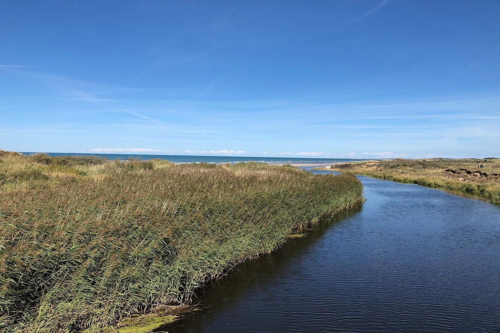 Dieses Ferienhaus befindet sich auf einem sehr großen Grundstück, das größtenteils als Rasenfläche angelegt ist und hervorragende Möglichkeiten für Outdoor-Aktivitäten bietet. Großer Poolbereich mit viel Platz zum Schwimmen oder einfach nur zum Spielen. Der Poolbereich verfügt über hervorragendes Tageslicht, wo Sie auch die Aussicht auf die unberührte Natur genießen können. Das Haus liegt auf einem kleinen Hügel mit Blick auf die Tannis Bay mit wunderschöner Natur und Tierwelt, völlig ungestört. Von der Südterrasse aus gelangt man in die Eingangshalle mit einer 2025 renovierten Küche/Essbereich und einem Wohnzimmer mit neuen Möbeln aus dem Jahr 2025. Praktisch aufgeteilt mit Schlafzimmern an beiden Enden und einem großen Loft, das mit zwei Sitzsäcken als gemütlicher Aufenthalts-/Spielraum eingerichtet ist. Im Hauswirtschaftsraum befindet sich außerdem eine zusätzliche Gefriertruhe. Vom Wohnzimmer aus gelangt man auf die Terrasse mit Blick auf die Landschaft. Es gibt zwei Badezimmer, die beide 2025 renoviert wurden, eines davon mit Zugang zur Sauna. Es gibt einen Rasen mit zwei Fußballtoren. Mit seiner einzigartigen Lage ist dieses Haus ideal für diejenigen, die Entspannung, Sonne, Strand, Aktivitäten und Naturerlebnisse im Urlaub suchen.