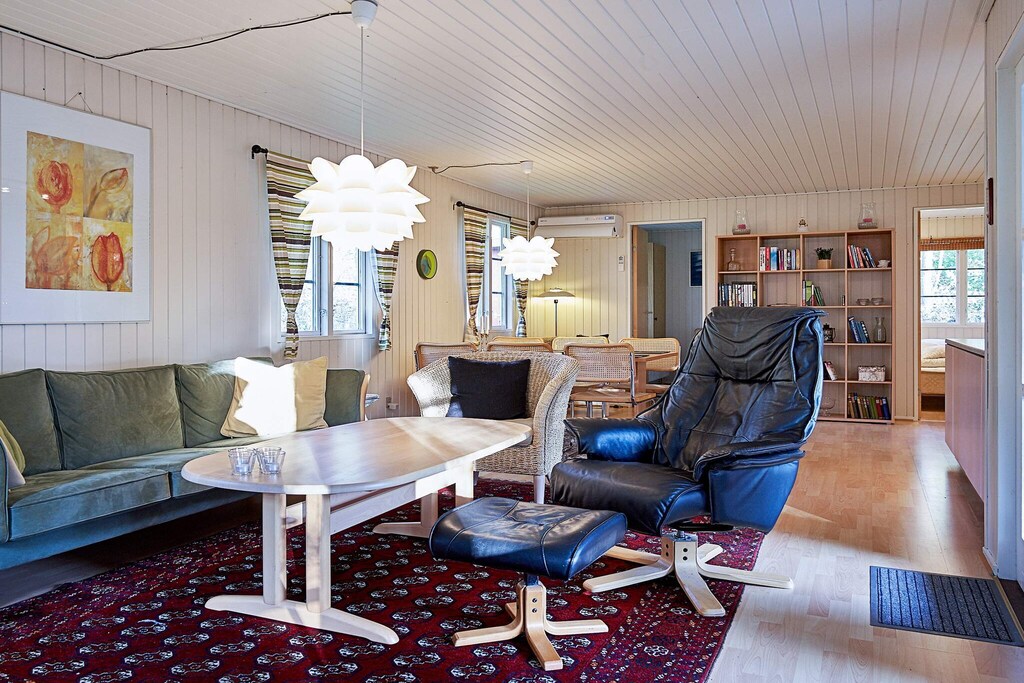 Gemütliches Ferienhaus auf einem großen Naturgrundstück in der Nähe eines der besten Sandstrände der Insel bei Vestre Sømarken. Das ältere Holzhaus ist wohnlich und in überwiegend hellen Farben eingerichtet. Es gibt eine schöne, teils überdachte Terrasse davor. Nicht weit entfernt befinden sich das einzige Michelin-Restaurant der Insel, das Kadeau, sowie das kleine, idyllische Fischerdorf I Bakkerne mit Räucherei, in der im Sommer abends manchmal Live-Musik dargeboten wird. Keine Vermietung an Jugendgruppen erwünscht!
