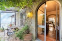 Im Inneren besticht die Villa durch ein einladendes Wohnzimmer mit Klimaanlage und eine große, gut ausgestattete Küche. Drei Schlafzimmer und zwei Badezimmer bieten Komfort und Funktionalität, während die antiken Möbel Wärme und Charakter verleihen. Im Nebengebäude erwarten Sie ein privater Whirlpool, ein türkisches Dampfbad (gegen Gebühr) und ein Fitnessbereich. Ein Blockhaus mit privater Sauna (gegen Gebühr) rundet das Wellnessangebot ab.