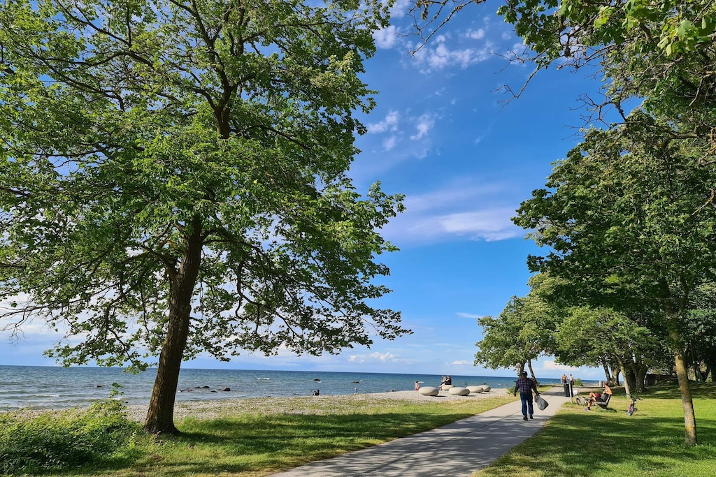 Im Herzen von Visby bekommen Sie hier die Möglichkeit, in einer sehr schönen Ferienwohnung in perfekter Lage am Södertorg zu wohnen, in fußläufiger Entfernung zu allem, was Sie brauchen, und noch mehr! Dies ist die optimale Lage, nur einen Steinwurf von Bäckereien, Cafés, dem Hafen von Visby, Restaurants, der Strandpromenade und einer fantastischen Umgebung, die man einfach erlebt haben muss! Als Nachbar von der Stadtmauer Visby Ringmur, die Sie auf einen historischen Spaziergang rund um das mittelalterliche Hansestaden führt, der sich bis zur Promenade und zum Almedalen erstreckt, zu wohnen, ist ein besonderes Erlebnis. So ist alles leicht zugänglich und die Umgebung gleichzeitig idyllisch und harmonisch. Sehr schöne Ferienwohnung mit offener Raumaufteilung zwischen Küche und Wohnzimmer. Schöner Balkon mit Blick in den Innenhof, wo Sie Ihren Morgenkaffee genießen können. Sie schlafen auf einem bequemen Schlafsofa für zwei Personen im Wohnbereich. Geräumiges Badezimmer mit Dusche, Waschmaschine und Wäschetrockner. Im Innenhof gibt es eine gemeinschaftliche Terrasse, die von allen Bewohnern der restlichen Wohnungen genutzt wird. Das Parken ist nicht im Preis inbegriffen, aber in unmittelbarer Nähe möglich, am einfachsten außerhalb von Visby Ringmur. Beginnen Sie den Tag mit einem Besuch in der örtlichen Bäckerei am Södertorg, genießen Sie Ihr Frühstück auf dem Balkon und erkunden Sie anschließend die mit Rosen übersäten Gassen von Visby, den Botanischen Garten, das Almedalen, die Kathedrale und das Stora Torget mit mehreren Restaurants etc. Visby ist das ganze Jahr über eine wunderschöne Stadt, aber vor allem im Sommer ist Visby voller Leben. Sie haben hier einen perfekten Ausgangspunkt, um den Rest der Insel mit dem Bus, dem Auto oder dem Fahrrad zu erkunden. Fahrräder können am Hafen gemietet werden, Gotland verfügt über sehr schöne Radwege. Die nächste Bushaltestelle ist nur wenige hundert Meter entfernt und bietet Verbindungen zum Rest der Insel. Die Strandpromenade bietet Ihnen einen schönen Spazierweg mit mehreren Stränden und Bademöglichkeiten bis nach Snäck.