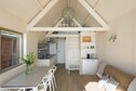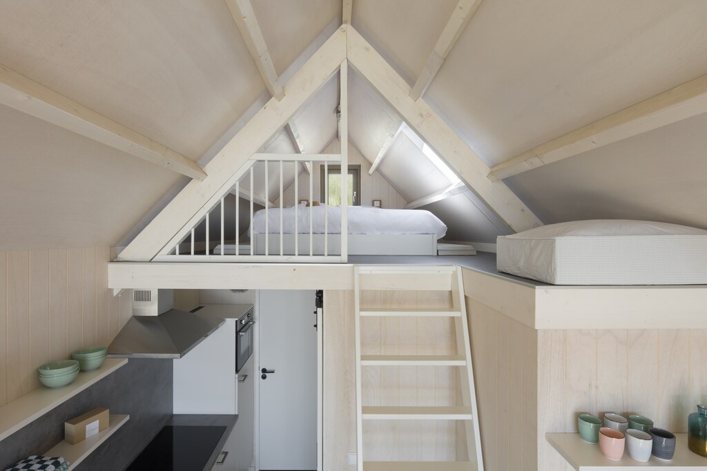 Das Strandhaus ist komplett und ansprechend eingerichtet. Es gibt ein Wohnzimmer mit Smart-TV. Das Sofa kann auf Wunsch als Schlafsofa genutzt werden. In der offenen Küche finden Sie u. a. eine Kombi-Mikrowelle und eine Spülmaschine. Es gibt ein Schlafzimmer mit einem Etagenbett. Es gibt auch einen Dachboden mit einem Doppelbett, erreichbar über eine steile Treppe vom Wohnzimmer aus. Hier können Sie sogar von Ihrem Bett aus die herrliche Aussicht auf das Meer und den Strand genießen. Das Badezimmer ist mit einer Dusche und Toilette augestattet.
