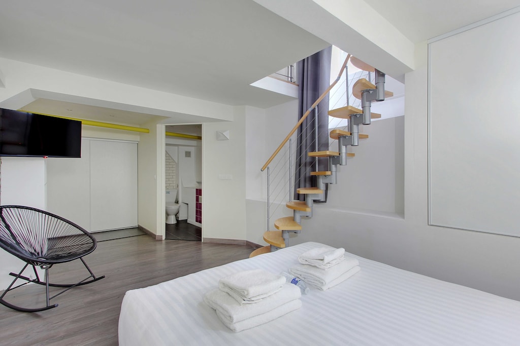 Super séjour dans ce magnifique appartement, L'endroit a beaucoup de charme, Décoration moderne et élégante, Cuisine bien équipée et totalement fonctionnelle, Grande salle de bains et large douche, Espace nuit en dessous spacieux et lit très confortable, Si je devais mentionner un petit inconvénient, ce serait les escaliers pour passer d'un niveau à l'autre : accrochez-vous bien à la rampe, déconseillé aux personnes à mobilité réduite, Mis à part cela, c'est un super spot CheckMyGuest que je recommande !