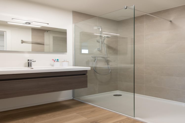 Dusche (ebenerdige Dusche), Waschbecken, Föhn
