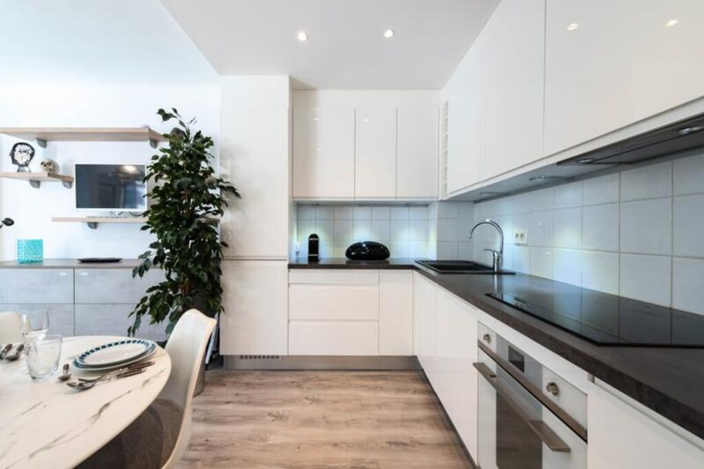 Dieses helle und einladende Apartment ist durchdacht gestaltet und bietet höchsten Komfort. Der offene Wohnbereich verfügt über eine gemütliche Lounge mit einem großen Ecksofa, ideal zum Entspannen nach einem erlebnisreichen Tag. Die voll ausgestattete Küche lädt zum Kochen ein, während der clever gestaltete Schlafbereich ein Queensize-Klappbett mit einer verschiebbaren Trennwand für mehr Privatsphäre bietet. Ein modernes Badezimmer mit Waschbecken, WC und Bidet rundet dieses charmante Refugium ab und sorgt für einen erholsamen Aufenthalt.