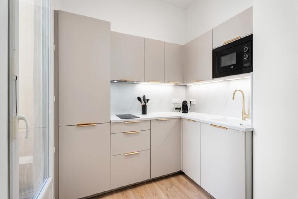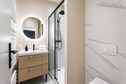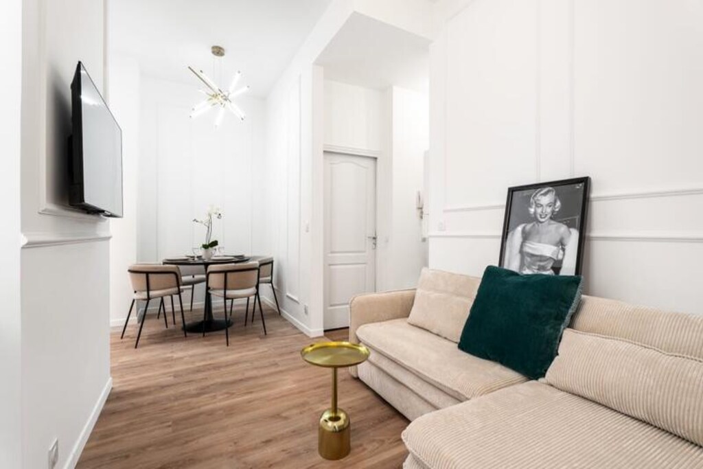 Das von einem Innenarchitekten gestaltete Apartment strahlt Eleganz und Modernität aus. Das gemütliche Wohnzimmer lädt zum Entspannen ein, während der Essbereich ideal für gemeinsame Mahlzeiten ist. Ein Highlight ist das Heimkino mit komfortabler Lounge-Ecke und Tischfußball, das Unterhaltung für Jung und Alt bietet. Die voll ausgestattete Küche lässt keine Wünsche offen – von der Kaffeemaschine bis zum Geschirrspüler – und macht die Zubereitung Ihrer Lieblingsgerichte zum Kinderspiel. Zwei Schlafzimmer mit komfortablen Doppelbetten und ein elegantes Badezimmer mit Dusche sorgen für höchsten Komfort. Jedes Detail wurde sorgfältig durchdacht. Die kleine, möblierte Terrasse bietet einen ruhigen Ort, um den Morgenkaffee oder einen abendlichen Aperitif zu genießen.