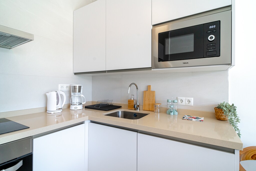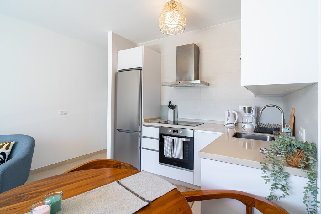 Das Apartment ist komplett ausgestattet und sorgt für einen entspannten Aufenthalt. Die offene Küche mit Induktionsherd bietet alles von einem Geschirrspüler bis hin zu einer Kaffeemaschine – perfekt für selbst gekochte Mahlzeiten oder ein gemütliches Frühstück. Bleiben Sie mit WLAN in Verbindung, entspannen Sie vor dem Fernseher oder genießen Sie einen Grillabend im umzäunten Garten. Mit Klimaanlage, Waschmaschine und durchdachten Details wie Haartrockner und Bügeleisen bietet dieses Apartment allen Komfort eines Zuhauses in einer familienfreundlichen Umgebung – nur 65 km vom Flughafen Málaga Costa del Sol und 35 km vom malerischen Golfplatz Bavaria entfernt.