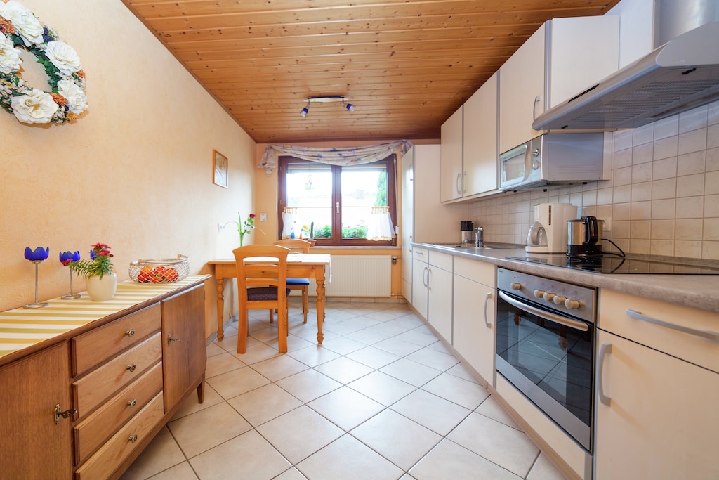 Toaster, Kochherd (Ceranfeld, elektrisch), Kaffeemaschine (Filter), Backofen, Mikrowelle, Kühlschrank (+ Gefrierfach)