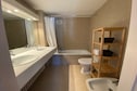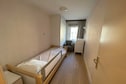 Das Apartment verfügt über zwei Doppelzimmer im hinteren Bereich, eines davon mit eigenem Bad, ein drittes Schlafzimmer mit Etagenbetten, ideal für Kinder, ein separates Duschbad und ein Gäste-WC. Eine private Garage und ein Fahrradabstellraum sorgen für zusätzlichen Komfort.