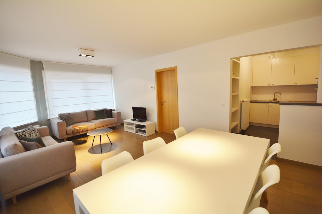 Willkommen in dieser wunderschön renovierten Erdgeschosswohnung in perfekter Lage im Herzen von Knokke. Dieses moderne Refugium bietet eine einladende Atmosphäre und ist ideal für alle, die die lebendige lokale Kultur kennenlernen möchten. Das Wohnzimmer verfügt über eine gemütliche Sitzecke zum Entspannen und einen Esstisch, der zu gemeinsamen Mahlzeiten und unvergesslichen Momenten mit Ihren Freunden einlädt.