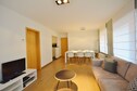 Die offene Küche ist mit Induktionskochfeld, Kaffeemaschine und Backofen bestens ausgestattet, sodass Sie köstliche Mahlzeiten zubereiten oder Ihren Lieblingskaffee für einen guten Start in den Tag zubereiten können. Die Wohnung verfügt über zwei komfortable Schlafzimmer: ein ruhiges Schlafzimmer mit einem Doppelbett zum Entspannen und ein zweites Schlafzimmer mit einem Etagenbett – ideal für Kinder oder zusätzliche Gäste.