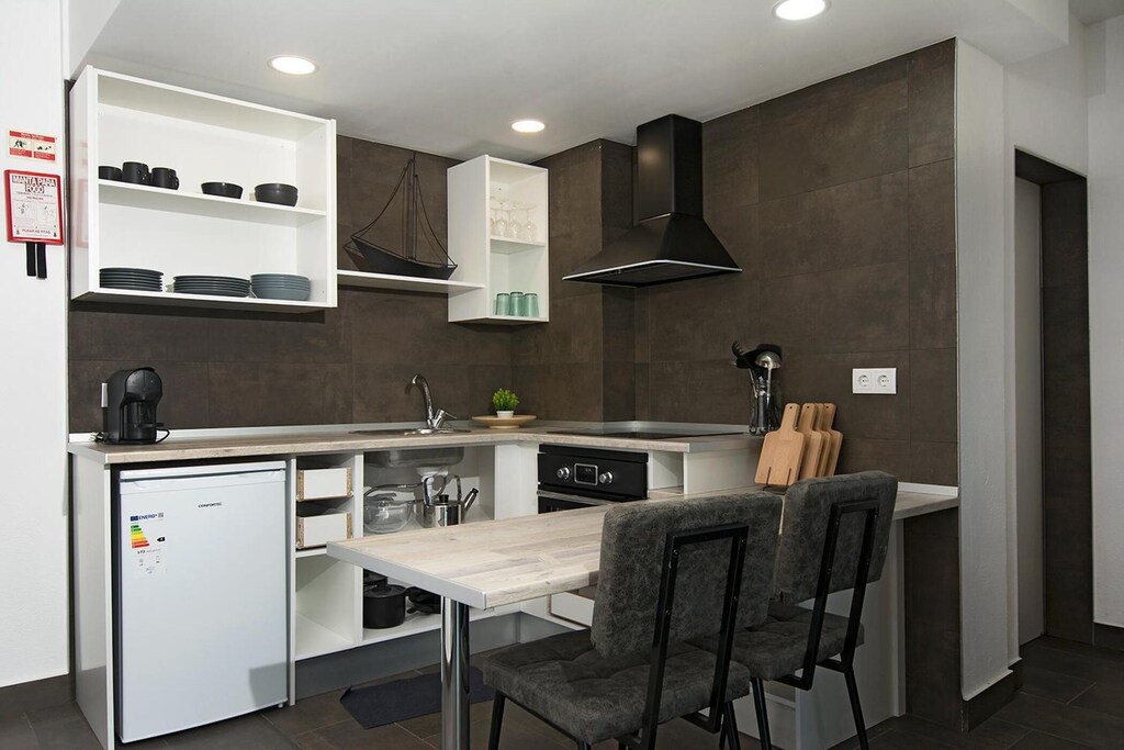 Genießen Sie den phantastischen Blick vom überdachten Balkon über die Dächer und die Lagune von Lagos! Das modern eingerichtete und sehr gut ausgestattete Appartement im 3. Stock eines Wohnhauses (Aufzug) bietet ein geschmackvolles Ambiente für 1-2 Personen. Auf dem großzügigen Balkon mit bequemen Sitzmöbeln können Sie herrlich entspannen und den Blick Richtung Meer schweifen lassen. Der Schlafraum ist vom komfortablen Wohnbereich durch einen Vorhang getrennt. Einkaufsmöglichkeiten, Restaurants, Cafés sowie die nächsten Strände sind auch zu Fuß schnell erreichbar.