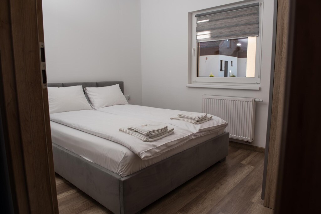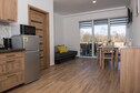 Komfortable 2-Zimmer-Ferienwohnung im Erdgeschoss. Es ist so konzipiert, dass es bequem Platz für 4 Personen bietet. Es besteht aus einem Wohnzimmer (ausziehbares Doppelsofa, Tisch mit Stühlen und TV), einem Schlafzimmer mit Doppelbett und einem Badezimmer mit Dusche. Das Wohnzimmer ist mit der Küche verbunden. Die Wohnung verfügt über eine Entspannungsterrasse mit Gartenmöbeln und Grill. Den Gästen steht WLAN zur Verfügung.