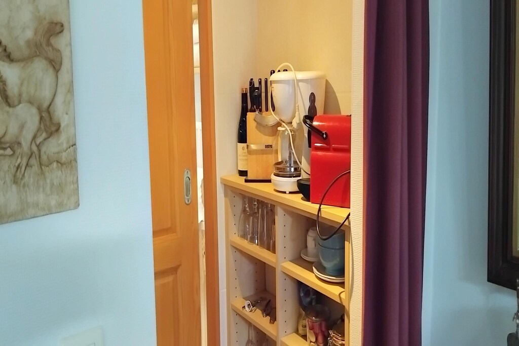 Kochplatte (2 Kochplatten, elektrisch), Wasserkocher, Toaster, Kaffeemaschine, Kaffeemaschine (Espresso, cups), Mikrowelle, Kühlschrank