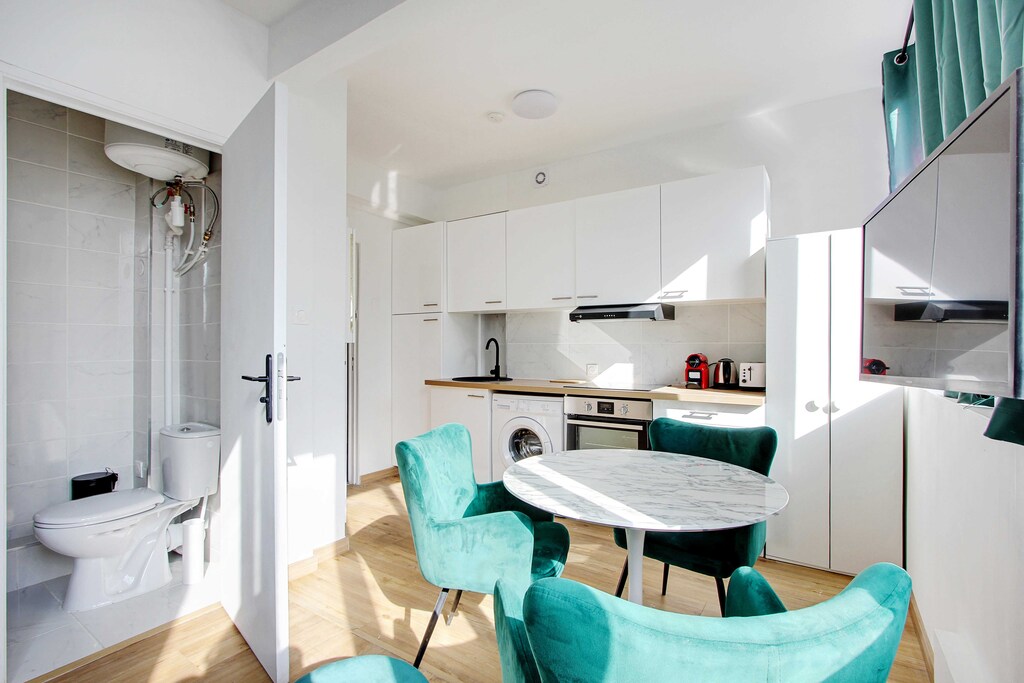 Este estudio es perfecto para una escapada corta, Es compacto pero tiene todos los elementos esenciales, incluida una lavadora, que fue una gran ventaja, Aprecié el WiFi gratuito y el acogedor área de descanso para relajarse después de un día de turismo, También está convenientemente ubicado cerca de la estación de metro Jourdain, lo que facilita el acceso a atracciones clave como el Museo del Louvre y Notre Dame, ¡Una sólida opción para los viajeros con presupuesto!