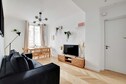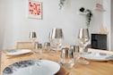 Fantastic flat, All facilities are in impeccable condition, The interior decor is splendid, Ample storage space, which can make extended stays comfortable, The bathroom and linen are of superior quality, and all appliances (from silverware to kitchen tools including glasses or washing machines) are premium, The listing can easily accommodate 6 guests as stated, although it might feel a bit cramped if so, The only potential downside may be its ground floor location with some windows facing the main street, causing it to lack natural light and be somewhat noisy when windows are open,