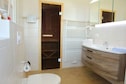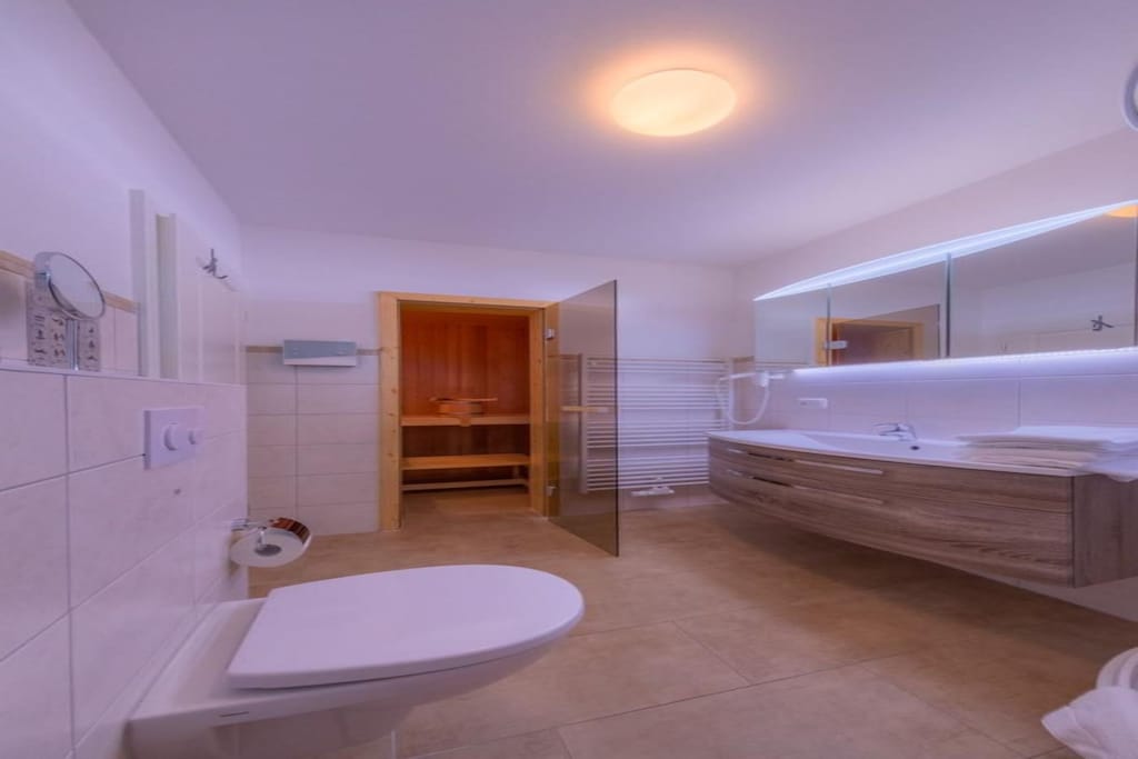 Die Unterkunft war groß und sauber, mit einer voll ausgestatteten Küche, Wir fanden die Fußbodenheizung und die Sauna sehr angenehm, Die Rezeption war nett,