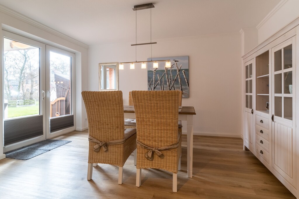 Das Haus "Kiek över´n Diek liegt im Ortsteil Ording in unmittelbarer Nähe des Ordinger Deiches. Die Wohnung Deichlamm liegt auf der der Straße abgewandten Seite des Hauses. Die Wohnung ist im Jahr 2017 frisch renoviert und das Mobiliar vollständig erneuert worden. Mit der gewonnen Geräumigkeit und einem völlig neuen Innendesign, können sich nun bis zu zwei Gäste während der schönsten Zeit im Jahr bei uns zu Hause fühlen. Die Küche bietet vollausgestattet unter anderem eine Kaffeemaschine und Wasserkocher sowie ein Cerankochfeld und Backofen. Auf der Terrasse stehen Tisch und Stühle für ein sonniges Frühstück oder ein Stück Kuchen am Nachmittag bereit. Im Strandkorb oder auf unseren Liegen bildet die Rasenfläche eine eigene Erholungsoase. Nach einem ausgiebigen Tag am Strand, einem Spaziergang oder Erkundungstour durch den Ort lädt der Wohnbereich mit einem Esstisch und der gemütlichen Sitzecken zum Verweilen ein. Der Wohn- und Schlafbereich ist durch eine halb hohe Mauer getrennt. Für die Nachtruhe befindet sich im Schlafbereich ein neues komfortables Boxspringbett (160 x 200 cm).