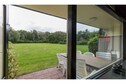 Wohnbereich und Außenbereich: Das gemütliche Wohnzimmer öffnet sich zu einer Terrasse mit Gartenmöbeln und zwei Sonnenliegen mit Blick auf einen geräumigen, gemeinsam genutzten, nach Süden ausgerichteten Garten – ein perfekter Ort zum Sonnenbaden oder Spielen.